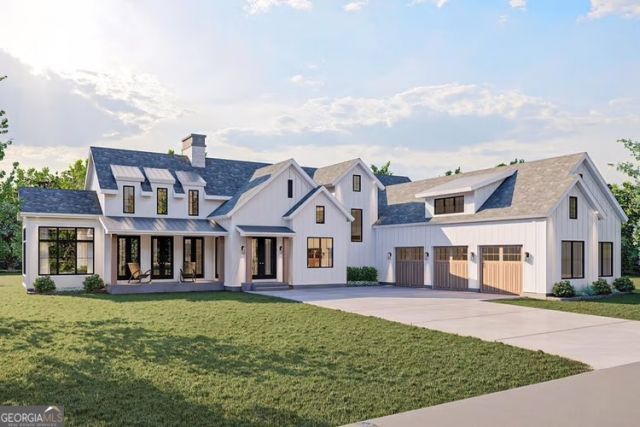 This stunning Modern Farmhouse is a custom, to-be-built residence featuring a charming exterior and a 3-car courtyard garage. Step inside to a grand entry with soaring ceilings that leads to an expansive great room, complete with a double-sided fireplace and access to a sunroom-perfect for entertaining and relaxation. The chef's kitchen is designed for gatherings, featuring a large island and a walk-in pantry. The luxurious owner's suite offers a spa-like retreat with a soaking tub, dual vanities, and a spacious walk-in closet. Upstairs, discover three additional bedrooms and an optional bonus room for added flexibility. Located near Trilith, Peachtree City, Tyrone, and Senoia, this home combines luxury and convenience in one of Fayetteville's most desirable neighborhoods. Don't miss out on this incredible opportunity to create your custom dream home-call us today! Disclaimer: All information is deemed accurate but subject to change based on customizations. Final home plans may be modified to meet the buyer's preferences. Photos are for illustrative purposes only. Pool not included in pricing.