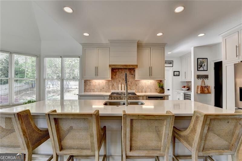 This masterpiece home sets the new standard for custom luxury living in Johns Creek. The seller of this property, a high end builder, has renovated this home in every way possible. No detail was overlooked..the home and the property exude casual elegance throughout. Be prepared to fall in love the minute you walk in. Before you even step inside, you will notice the extraordinary curb appeal of the home with brand new stone mailbox. Bonus new roof and newer windows. Inside you will enjoy beautiful hardwood floors, high end lighting, soaring ceilings and custom barn doors to office. The star of the show is the breathtaking two story family room with 15 feet accordion doors to sumptuous covered porch. Door casings were opened up, a new custom staircase installed and the wall was removed between the family room and kitchen. Enjoy shiplap walls, beautiful quartz counters, massive 48 inch thermador range, the most unexpected and drop dead gorgeous terra cotta backsplash, newly installed butler's pantry and friendship door. If the previous owners were to walk in this home, they wouldn't even recognize it because it was completely transformed from average to exquisite. You are in for such a treat once you open the sliding door to the outside. Not only is the covered porch simply divine but the backyard is everything you can imagine and more...Beautiful heated pool featuring new pebble tec, new pool deck, tile and pool equipment...Relaxing stone waterfall that provides the most soothing backdrop for this backyard oasis....Pretty seating areas around the pool including a covered pergola. The seller's completely changed the backyard into a park-like setting that will be your private paradise. Upstairs the fabulous continues with well proportioned primary suite featuring an incredibly renovated bath. New tile, countertops and a sumptuous double shower with two showerheads and two handhelds. Custom primary closet puts a bow on the space. Large secondary bedrooms with renovated baths round out the second level. The seller finished the terrace level in true luxury. Full bath, rec room, yoga room, and pretty covered patio. You have found your forever home!