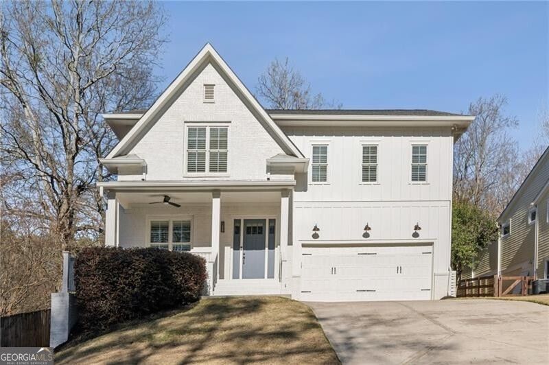 Do not miss this stately, newer construction modern farmhouse-style home in Woodland Hills! Built by Atlanta Remodeling and Construction (ARC), this home has been impeccably kept by its first owner. As you enter the large, covered porch, the 10 ft ceilings on both levels, site-finished white oak hardwood floors throughout, and plenty of windows that fill the space with natural light are sure to impress. You will enjoy entertaining in the formal dining room, chef's kitchen appointed with cabinetry to the ceiling, 5-burner gas range, designer tile backsplash and quartz countertops and large center island that opens to the great room and eat-in area. Generous walk-in pantry and butler's pantry with sink and wine refrigerator add both ease and elegance. The great room features a gas fireplace, sweeping view of the flat backyard and wooded area with mature trees, access to the rear covered patio, and tiled mudroom. The mudroom features handy storage cubbies and connects to two-car garage, the rear patio, and tucked-away powder room. As you ascend the grand staircase, you'll appreciate the spacious proportions of the primary suite, featuring a well appointed spa bath with free-standing tub, huge frameless shower with designer tile and overhead and handheld fixtures, separate vanities with stylish mirrors and lighting, water closet, and custom walk-in closet. Room for family and guests abounds in the guest bedroom with en-suite bath, and two additional bedrooms sharing a jack-and-jill bath, both appointed with designer tile and fixtures. Laundry will be a breeze in the conveniently located laundry room, which features an additional linen closet, generous cabinetry, large countertop for folding, and a deep sink. Luxurious details include shutter and wood blinds on all windows, designer tile and light fixtures throughout, ample closet and storage space with wood shelving, and soft-close cabinetry. Enjoy the convenience of the tankless water heater and EV charger. This home has thoughtful touches throughout and feels like new! Easy access to Emory University, CDC, Buckhead, Midtown, Downtown, Morningside, interstates, restaurants, shopping and MARTA - yet with the privacy and quiet location on Country Lane, you will forget you are in the city