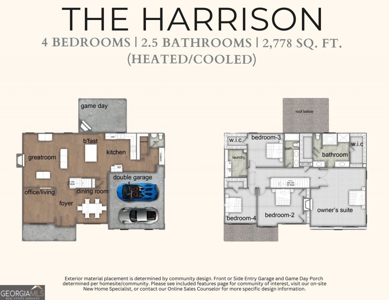 Welcome to Mountain Point Villas in Fortson Ga. Introducing the Harrison C Floorplan, offering 2,778 square feet of thoughtfully designed living space with 4 bedrooms and 2.5 baths. From the moment you enter, the foyer sets the tone, flanked by a formal dining room featuring a coffered ceiling and rich architectural detail. A bright flex space offers versatility for a home office, study, or creative retreat. The spacious great room, anchored by a wood-burning fireplace, flows seamlessly into the heart of the home. The open-concept gourmet kitchen is designed for both everyday living and entertaining, featuring abundant cabinetry, recessed lighting, gorgeous countertops, a tiled herringbone backsplash, an electric cooktop, a single oven with microwave, a stainless-steel vent hood, and a luxury dishwasher. A large center island opens to the breakfast area and great room, perfect for gathering, meal prep, or casual dining. The walk-in pantry provides generous storage. Off the garage, the owner's entry showcases our signature drop zone with built-in cubbies, creating the perfect catch-all with easy access to the conveniently located half bath for guests. Upstairs, to the expansive owner's suite, with a vaulted ceiling and cozy electric fireplace, creating a true private sanctuary. The owner's bath offers a relaxing garden tub, tiled shower, vanity, and dual walk-in closets. Additional bedrooms are generously sized with vaulted ceilings and ample closet space, while the hall bath and upstairs laundry room are centrally located for convenience. Enjoy luxury flooring throughout the main living areas, along with numerous luxury features throughout. Outdoor living shines with the signature Game Day Patio, with a wood-burning fireplace, TV pre-wire, all-weather speakers, and ceiling fan, ideal for year-round entertaining. 2 Car Side Entry Garage with Brick Wrapped Columns at Driveway Entrance, gate, solar panels and remotes. Come experience Mountain Point Villas in person.