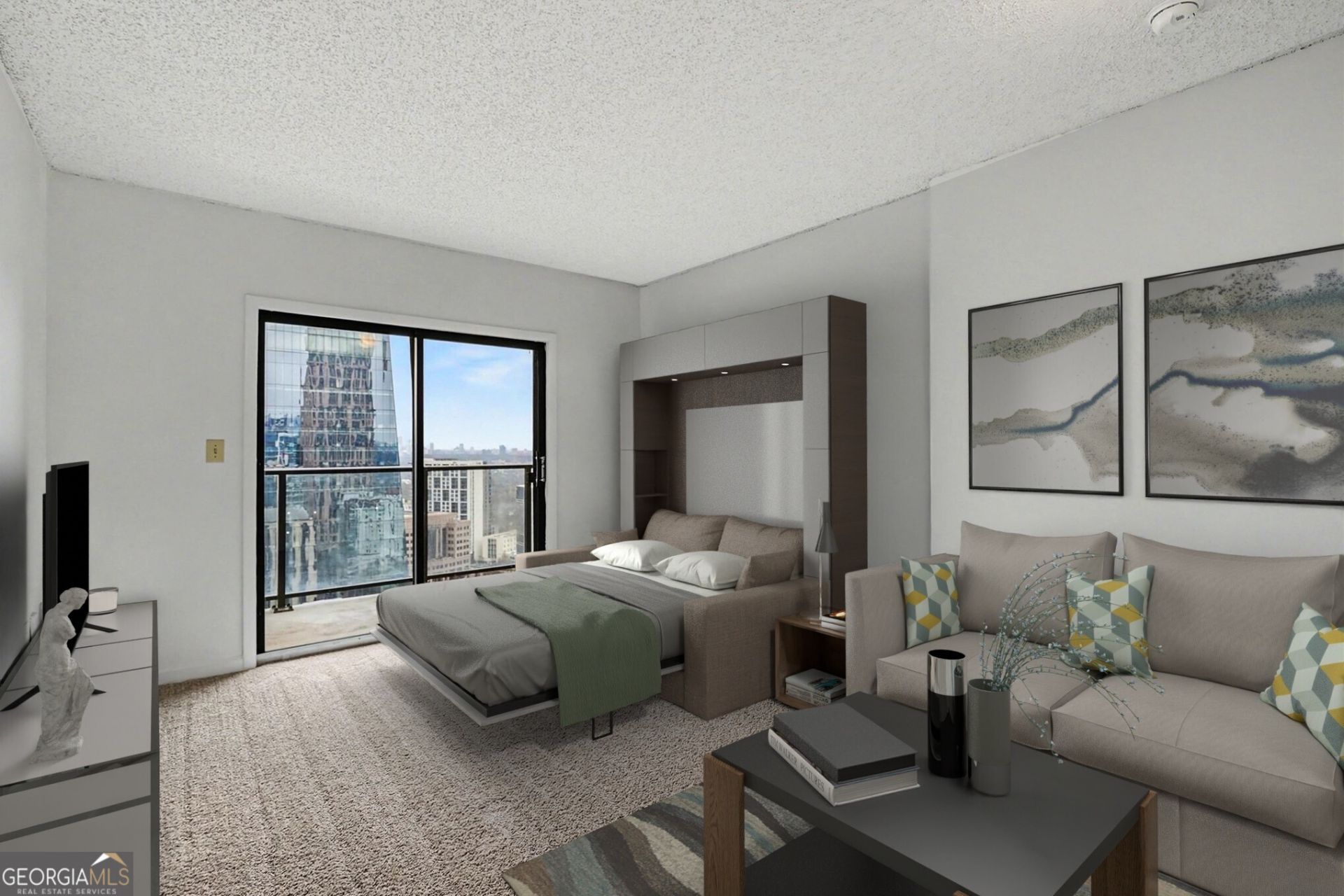 Perched high above Midtown, this Light-Filled Studio at 1280 West delivers Stunning Skyline Views, Resort-Style Amenities, and True Intown Walkability in one of Atlanta's most iconic high-rise communities. Floor-to-ceiling windows frame Panoramic City Views from the Living and Sleeping Areas, while a Private Balcony creates the perfect spot for morning coffee, evening sunsets, or taking in the energy of the city below. Inside, the Open-Concept Layout maximizes space and functionality, featuring a well-appointed Kitchen with Wood Cabinetry, Granite Countertops, Stainless Steel Appliances, and ample storage. The flexible living space easily accommodates a sleeping area, lounge, and work-from-home setup, making it ideal for urban living or investment potential. Residents of 1280 West enjoy an unmatched amenity package, including a Resort-Style Pool, Fitness Center, Tennis Courts, Basketball and Racquetball Courts, Billiards Room, Business Center, Catering Kitchen, and 24/7 Laundry Rooms on each floor. Perfectly positioned across from MARTA and just steps from Piedmont Park, the BeltLine, Colony Square, the High Museum, the Fox Theatre, Whole Foods, and Midtown's best Dining, Shopping, and Entertainment, this home offers the ultimate blend of Convenience, Lifestyle, and City Living. Whether you're a first-time buyer, investor, or seeking the perfect city retreat, this is Midtown living at its finest.