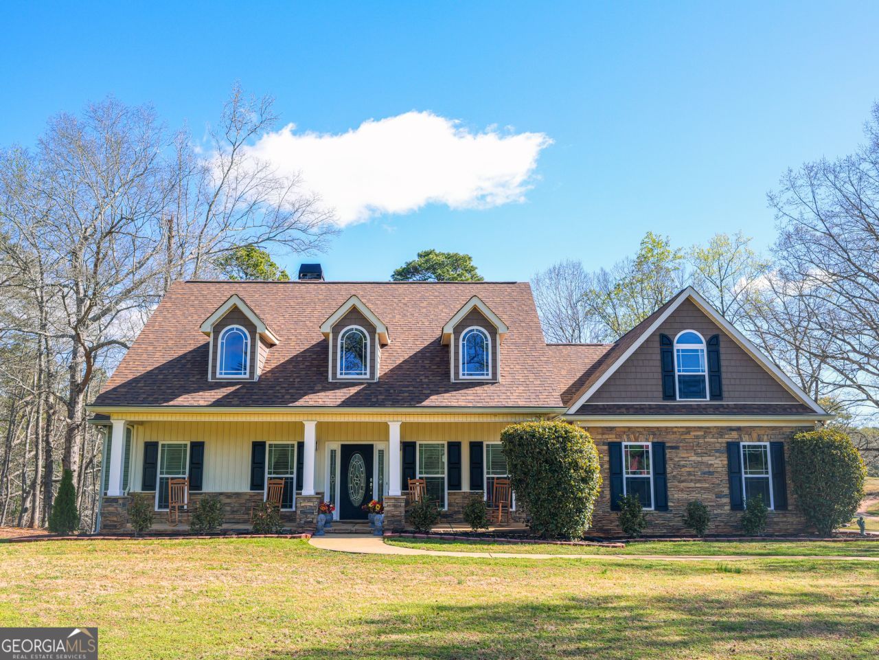 LAKE Front Living! Enjoy life on your very own lake where you have privacy, convenience, and an insulated workshop to tinker. This 3 bedroom, 3 bath ranch home with a full 2,075 square foot basement is situated on 7.25 acres in the north end of Coweta. From home, you have easy access to the interstate and Hartsfield Jackson Airport. From the rocking chair porch you will enter into an immaculate space with a dining room and living room on each side of the bright two story foyer. The living room has a closet and could be easily converted to a fourth bedroom, if preferred. The vaulted great room features a fireplace and is overlooked by the kitchen island. French doors open to the patio and lead you right out to the lake. The kitchen features abundant cabinet space, granite countertops, stainless steel appliances, and a breakfast area with lake view. The primary suite, with gleaming hardwood floors and a trey ceiling, is tucked away. The spa like bath features a separate tile shower, double vanities, a soaking tub, and massive walk-in closet. Upstairs is the 3rd bedroom with a full bath. The basement is ready for your dreams to come true! Maybe a theater room, a home gym, or a place to party!. It is stubbed for a full bath and a wet bar. Outside there is a separate detached 24' x 24' insulated garage with power. Store you toys or enjoy a workshop. Behind the workshop there's a 40' x 60' fenced in area with water. The enjoyment you will have at your new home is endless! Fish, kayak, swim, stroll the water's edge, or just sit back and enjoy the view. This one of a kind opportunity is rare. Please come see this stunning property! Welcome HOME!