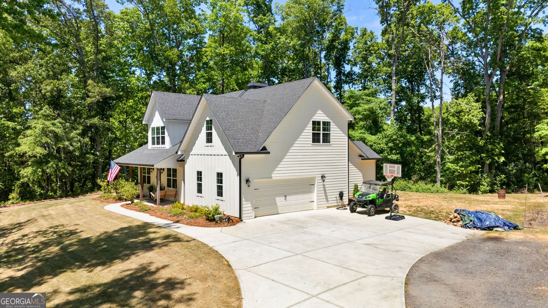 Welcome home to this Southern beauty-where elegance meets true country charm. This stunning four-bedroom, four-bath residence is perfectly situated on five acres of private, lush land, offering both space and serenity in a picturesque setting. Step inside to discover a thoughtfully designed layout centered around a gourmet kitchen that's ideal for entertaining or simply enjoying everyday moments. With ample space at the island for gathering, it serves as the true heart of the home, while a cozy breakfast nook creates the perfect setting for relaxed weekend meals. The main-level primary suite provides a peaceful retreat, complete with a luxurious en suite bath featuring a soaking tub where you can unwind and let the stresses of the day melt away. Upstairs, you'll find two additional bedrooms and two full baths, along with a versatile open space that can easily function as a home office, playroom, study, or casual living area-offering comfort and privacy for family or guests. Outdoors, the property is just as impressive. The land has been carefully crafted for outdoor enjoyment.