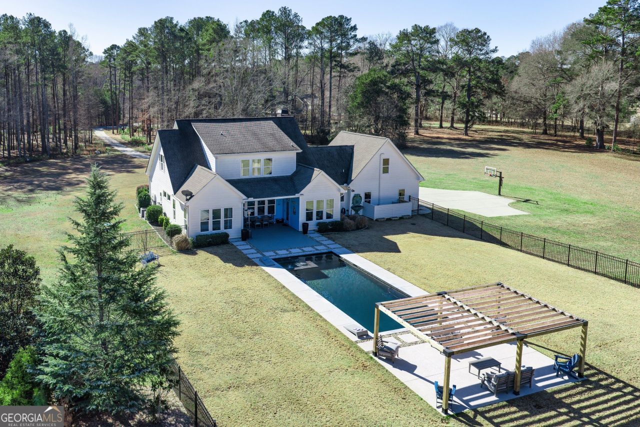 Back on market due to buyer financing - absolutely no fault of the seller or property. This home has now been fully vetted and is move-in ready. Previous contract successfully completed full home inspection, clear/clean termite letter, septic inspection with clean letter (system pumped and serviced), HVAC inspection with clean service letter, and completed appraisal. All major due diligence items have been addressed, providing peace of mind for the next buyer. This home is ready for a smooth and timely closing. Privately set on five secluded acres in the highly desirable Woodbridge Farms community, this remarkable custom-built Mitch Ginn estate is a showcase of intentional design, superior craftsmanship, and timeless elegance. From the moment you arrive, the expansive wrap-around porch makes a statement - offering both architectural charm and everyday livability. Whether enjoying morning coffee or evening sunsets, this space was designed to be lived in and loved. Inside, every detail reflects quality construction and thoughtful planning. The dining space transitions seamlessly into a stunning living room anchored by a dramatic stacked-stone fireplace with custom built-in cabinetry - a refined focal point that blends warmth and sophistication. The open-concept kitchen was designed for both entertaining and daily function, featuring an oversized island with bar seating, double ovens, a new stovetop, abundant prep space, and views into a light-filled breakfast area overlooking the private backyard. The main-level primary suite offers a serene retreat with pool views and a fully customized walk-in closet complete with built-in shelving, drawers, and tailored organization. The spa-inspired bath includes dual vanities and an oversized walk-in shower with dual shower heads, delivering a true luxury experience. A private main-level guest suite with a designer wood shiplap accent wall and herringbone tile en suite bath ensures comfort and privacy for visitors. Upstairs, you'll find three additional bedrooms, including two private en-suites, offering exceptional flexibility for family or guests. A spacious bonus room completes the upper level, ideal for a media lounge, playroom, or additional living space. Outdoor living is where this property truly distinguishes itself. The custom-designed saltwater swimming pool with heated spa creates a private resort setting, complemented by a covered patio and pergola for year-round enjoyment. The fully fenced backyard blends seamlessly into the surrounding acreage, offering both beauty and privacy rarely found at this level. This is more than a home - it is a thoughtfully crafted estate offering space, privacy, luxury, and enduring value. Southeast Mortgage is our preferred lender. Buyers who choose to work with Southeast Mortgage will receive a 1% credit up to $5,000. Please contact the listing agent for additional information.