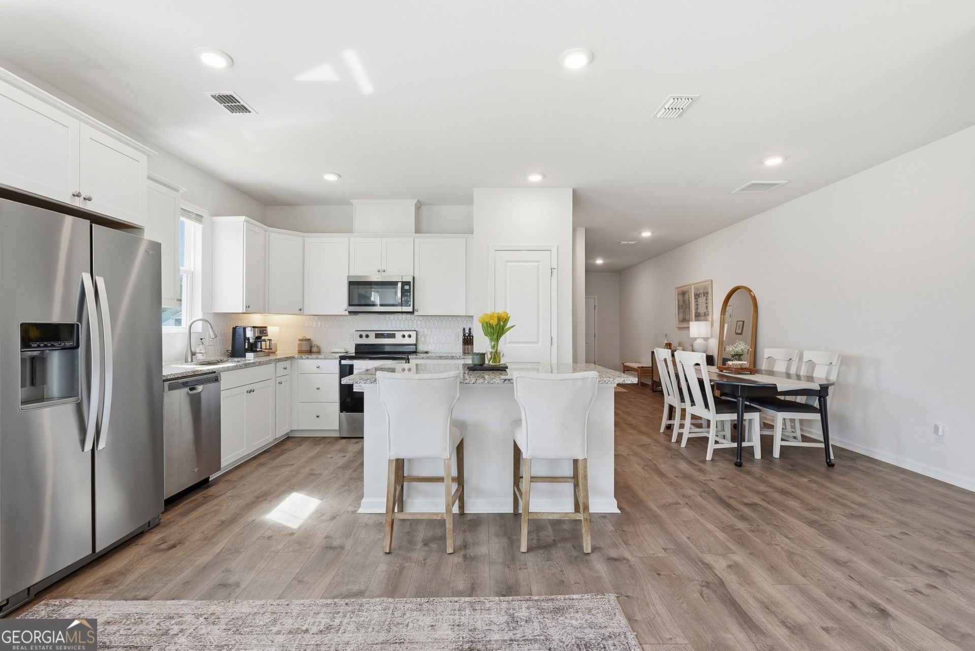 Welcome to this beautifully maintained end-unit townhome in the desirable Hunt Club community! This bright and airy home features an open-concept floor plan filled with natural light, creating an inviting space perfect for both everyday living and entertaining. The spacious kitchen is equipped with granite countertops, stainless steel appliances, a large island, and ample cabinetry, flowing seamlessly into the dining and living areas. LVP flooring throughout the main level adds warmth and style, while the screened porch offers a relaxing outdoor retreat. Upstairs, the owner's suite provides a private escape with a double vanity and separate shower, along with two additional bedrooms and a convenient laundry area. Situated on a rare oversized lot that can be fenced in if desired - 0.18 acres - more than twice the size of most in the neighborhood - this end unit offers added privacy and outdoor space that is hard to find. Located on a quiet cul-de-sac with access to community amenities including a pool and playground, this home combines comfort, space, and convenience. Energy-efficient construction and modern finishes complete this move-in ready opportunity just minutes from shopping, dining, and I-95.