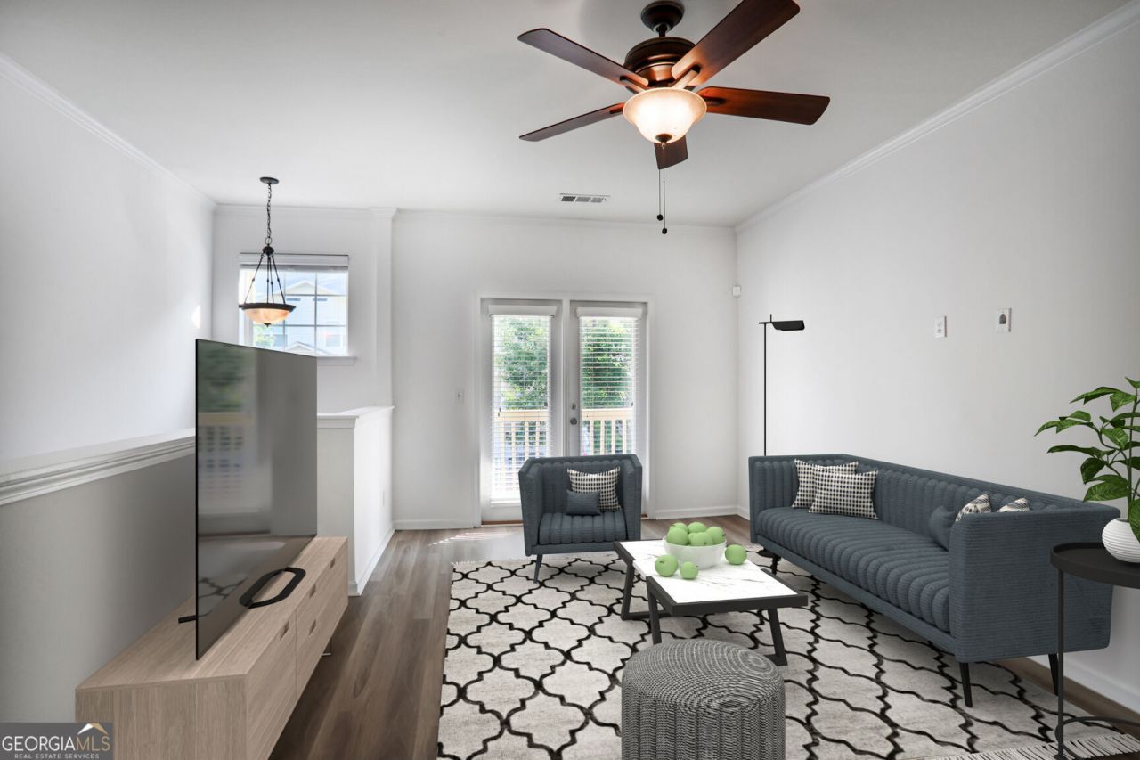 Welcome home to Liberty Park, where style, convenience, and city living come together. This beautifully maintained 3-bedroom, 3.5-bath townhome offers the perfect opportunity for first-time buyers, professionals, or anyone seeking an intown lifestyle. The main level features a spacious open living room with access to a private front balcony, perfect for morning coffee or relaxing evenings. The eat-in kitchen includes an island, pantry, and direct access to the rear patio, creating an ideal setup for entertaining and easy everyday living. A convenient half bath completes the main floor. Upstairs, you'll find two generously sized bedroom suites, including a spacious primary suite with double vanities and a walk-in closet. The secondary upstairs bedroom also features its own private bath, making it ideal for guests or a roommate. The lower level offers a private bedroom with en-suite bath, perfect for a guest suite, home office, gym, or flex space. Residents enjoy premium amenities including a swimming pool and dog park, all within a secure gated setting. Conveniently located near neighborhood shops, restaurants, and grocery options, with quick access to the Atlanta BeltLine, Silver Comet Trail, Topgolf, West Midtown, downtown Atlanta, and major interstates. This move-in-ready home offers the ideal combination of location, lifestyle, and low-maintenance living.