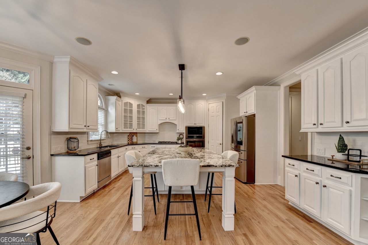 Welcome to elevated living in one of the largest homes in Stonebrier, ideally situated within a prestigious gated community offering top-rated schools and exceptional convenience to shopping, dining, and quick access to I-85. This impressive 6-bedroom, 6.5-bath residence delivers a refined balance of luxury, space, and everyday functionality. From arrival, the home makes a striking impression with three-sides brick construction, an extended driveway, a 3-car garage, and a welcoming covered front porch. Inside, a grand curved staircase with elegant wrought-iron detailing serves as a dramatic focal point, setting the tone for the thoughtfully designed interior. The expansive floor plan is designed for both comfortable daily living and effortless entertaining, featuring new designer lighting throughout and freshly installed carpet in select areas that enhance the home's timeless finishes. A beautifully finished basement and an additional versatile flex room provide endless options for a guest suite, home office, media room, or fitness space. At the center of the home, the chef's kitchen offers an oversized granite island, stainless steel appliances, and seamless flow into the main living area. One of two inviting fireplaces, framed by custom built-in bookcases, anchors the space-ideal for gatherings or quiet evenings. Upstairs, additional built-in bookcases along the hallway create a perfect setting for a home office, study area, or private library. The oversized primary suite serves as a private retreat, complete with a spacious walk-in closet and a spa-inspired ensuite bath designed for relaxation. Outdoors, the private backyard and expansive deck provide an ideal setting for entertaining, outdoor dining, or unwinding at the end of the day. Residents enjoy resort-style amenities, including a new clubhouse, pool, pickleball and tennis courts, and playground, all just minutes from premier shopping, dining, and major commuter routes. This exceptional residence offers a rare combination of luxury, scale, and location-an outstanding opportunity in the heart of Stonebrier.