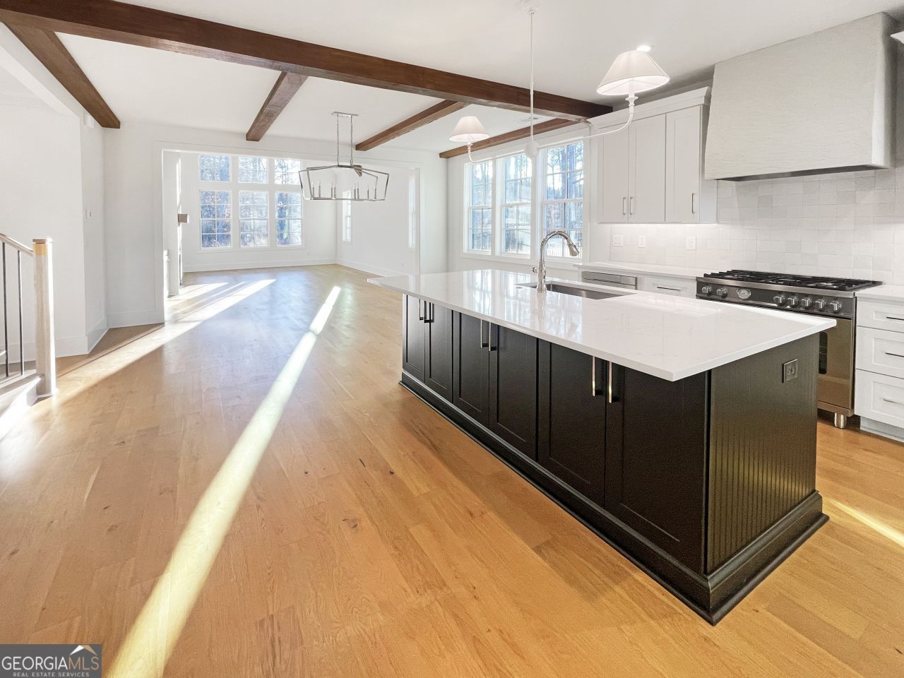 Great opportunity and price for a custom-built, totally unique home tucked away in Peachtree City. Soaring vaulted and beamed ceilings in the greatroom and primary bedroom. Beamed ceilings in the spacious, open luxury kitchen. Wood floors everywhere except in the baths (tile) and upstairs bedrooms. Built-in shelves and cabinets next to the fireplace, which has gas logs. There's an additional wood-burning fireplace outside on the covered rear patio. Custom closet system in primary, tankless water heater, golf cart garage, large laundry, hidden coffee/bar area off kitchen, and luxury upgrades throughout! Amenity center with pool, pickleball courts and more coming this Summer.