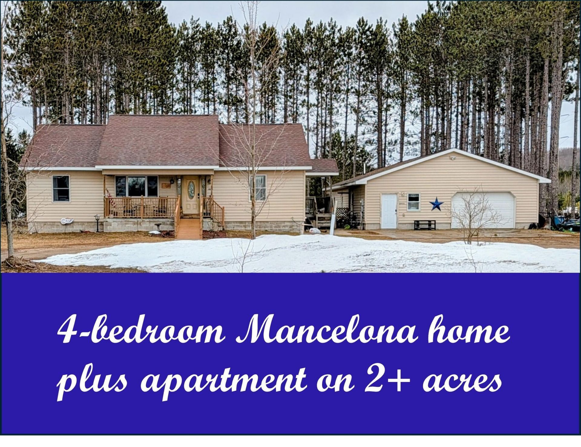 Experience ultimate versatility with 4 bedroom, 3 bath home on 2+ acres, PLUS garage with 1 bedroom, 1 bath apartment. Spacious and solid, inside and out, the home features in-floor radiant heat, 8 walls, foam-backed vinyl siding, beautiful tongue & groove ceilings and hardwood + tile floors. Huge game area in basement, plumbed for a wet bar, plus a bonus office space. 2 car garage includes apartment with kitchenette, perfect for guests, extended family, or as a rental to offset costs. Ramp to covered front porch, large back deck, and fenced yard, all on 2+ acres. Convenient to Traverse City, Shanty Creek, Torch Lake and all the 4-season activity Northern Michigan has to offer. A LOT of house and a great value, priced well below recent appraisal.