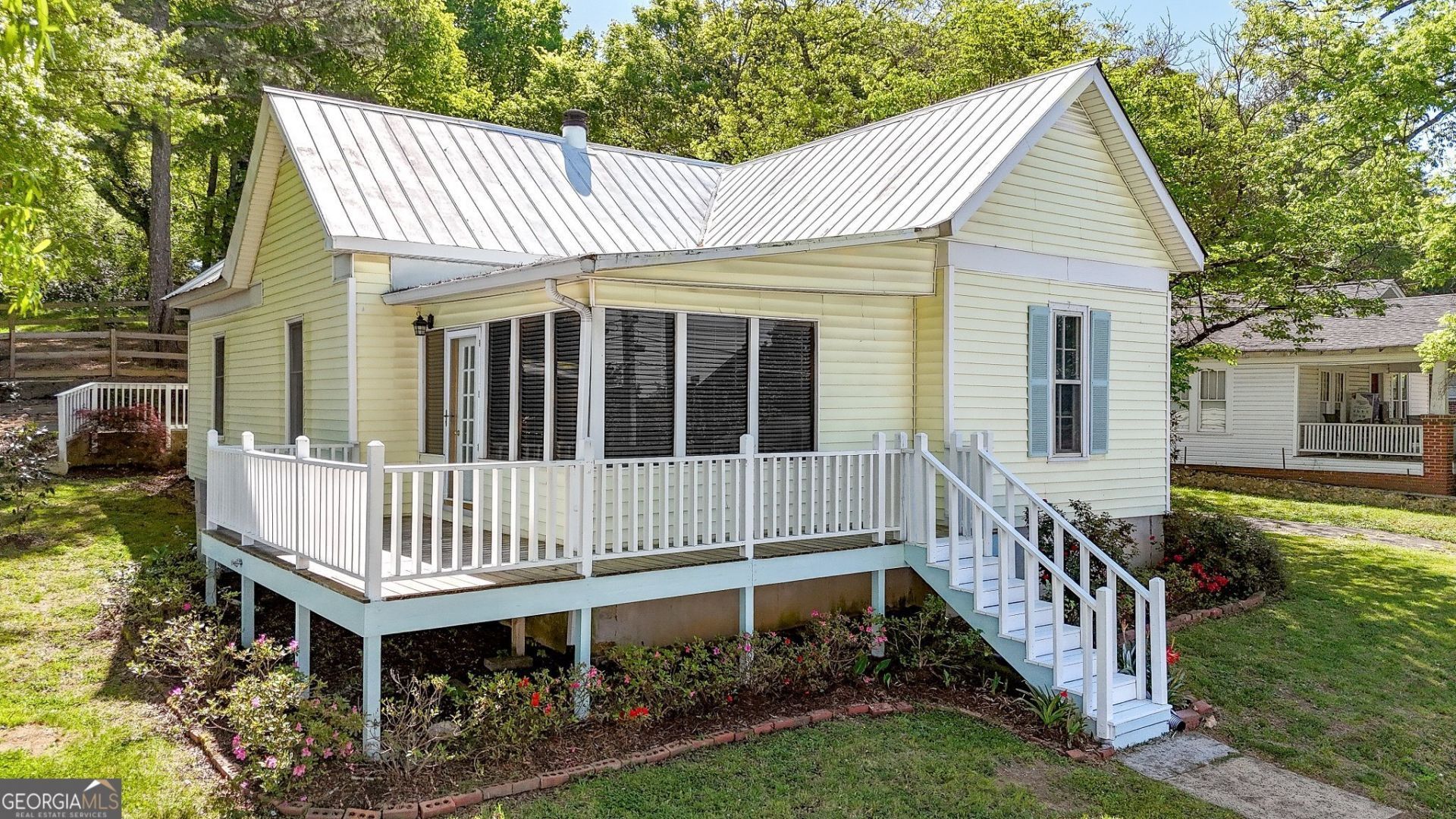 Tucked away on an oversized lot in the heart of downtown Calhoun, this charming cottage offers the perfect blend of comfort, character, and in-town convenience. Featuring 2 bedrooms and 1.5 baths, this inviting home showcases timeless craftsmanship and thoughtful updates throughout. Step inside to 9-foot ceilings, original 1910 moldings, and warm architectural details that reflect the home's historic charm. A beautiful wood-burning stone fireplace serves as the heart of the living space, creating a cozy and welcoming atmosphere. The light-filled layout flows effortlessly into a delightful sunroom perfect for morning coffee, reading, or relaxing year-round. Designed for easy, low-maintenance living, the home features a durable metal roof and has recently replaced windows, offering peace of mind and long-term value. Outside, the front deck provides tranquil mountain views while the beautifully landscaped yard showcases mature trees and lush greenery, creating a peaceful retreat with plenty of space to enjoy. The oversized lot also provides added flexibility, making this property an excellent option for a single-family residence or potential commercial use. Located just a short stroll from downtown Calhoun, you'll enjoy effortless access to local restaurants, shops, and everyday conveniences right at your doorstep. Whether you're seeking a primary residence, investment opportunity, or a unique live/workspace, this cottage delivers character, versatility, and the best of in-town living.