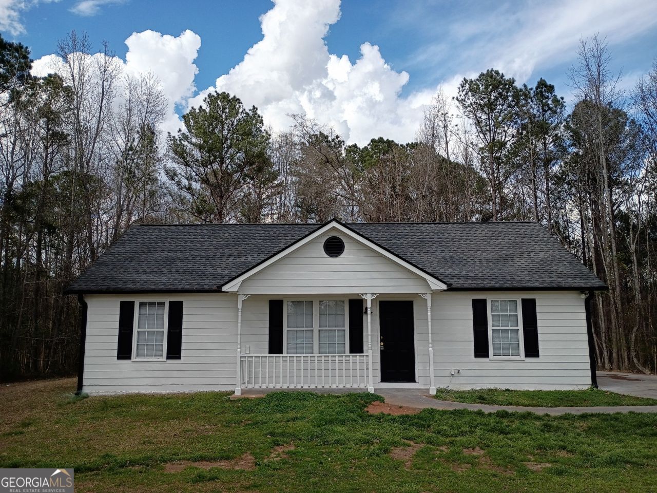 Be the first to enjoy this renovated ranch in Senoia! All walls and ceilings have fresh paint, and nearly all the flooring is new. Lots of natural light in every room. The living room has a vaulted ceiling, and leads to a dining space, which has a door to the huge wood-lined back yard. The kitchen has brand new appliances, and new quartz countertops, with a window at the sink overlooking the serene back yard. The kitchen connects to the laundry space, which has a door to the driveway. One side of the living room leads to the master suite with a large walk-in shower. The other side of the living room has a short hallway with two big closets, and leads to a full bathroom and two bedrooms. Both bedrooms have large closets.