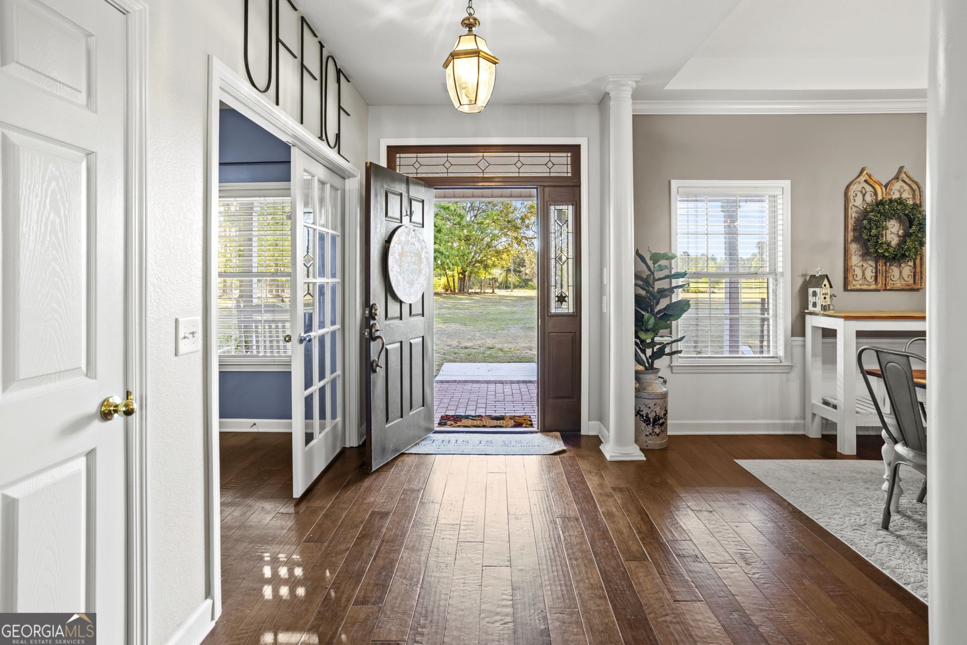 Escape to the peace and privacy of the countryside with this beautiful one-story brick home on just over 10 acres in Lyons, GA! Approximately 7 acres are planted in pines, offering both natural beauty and future potential. Outdoor living shines here with a saltwater pool (new liner in 2023), a cozy fire pit area, and a fenced section complete with electric fencing and a lean-to-perfect for farm animals. A 2-car garage was added in 2021, and there's also a 2-car carport for additional covered parking. Inside, you'll love the open floor plan featuring a spacious living room with a wood-burning fireplace. The kitchen is designed for both function and style with custom cabinetry, double ovens, separate fridge and freezer, and a sunny breakfast nook. A formal dining room adds the perfect space for gatherings. The large laundry room includes ample cabinet storage and a convenient half bath. The split bedroom layout offers privacy, with a generous primary suite on one side featuring a walk-in closet, tiled shower, and double vanity. On the opposite side, you'll find three guest bedrooms and a full hall bath. A huge bonus room with built-in cabinetry provides endless possibilities-game room, media space, or playroom. This property truly has it all-space, comfort, and country charm!