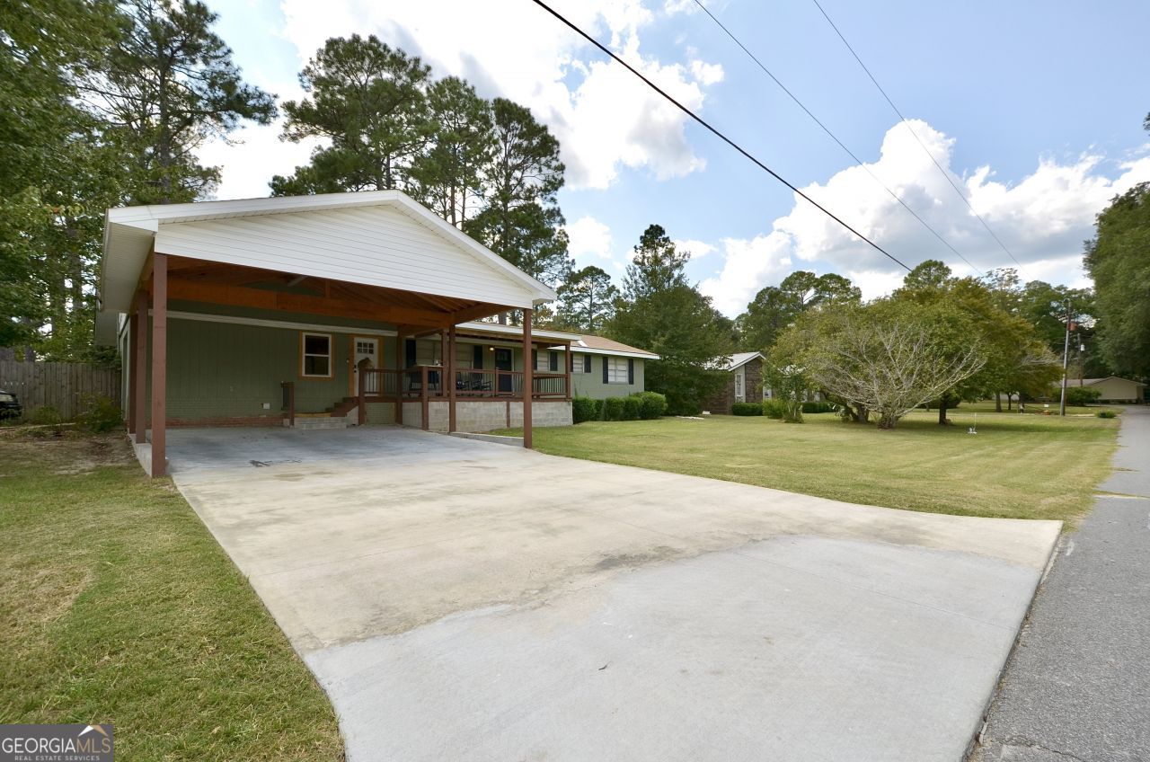 Welcome to this beautifully updated brick home that blends modern style with comfortable living. Sitting proudly on a large corner lot, this home offers plenty of curb appeal with a wide front yard, covered carport, and inviting front porch. Inside, you'll find 3 spacious bedrooms and 2 full bathrooms, including a luxurious, spa-like master bath with a freestanding soaking tub, walk-in shower with glass enclosure, and double vanity with sleek black fixtures. The updated kitchen is a dream for home chefs, featuring custom white cabinetry, butcher block countertops, subway tile backsplash, stainless steel appliances, and a warm wood floor that flows into the dining area. Flexible spaces make this home stand out! You'll enjoy a dedicated office/playroom as well as a large workout room/family room with exposed brick accents- perfect for hobbies, fitness, or entertaining. Other highlights include: Updated finishes throughout, versatile floorplan, large covered carport and driveway parking, & mature trees and a private backyard. This home is move-in ready with modern upgrades while still offering plenty of charm. Don't miss the chance to make this home yours!