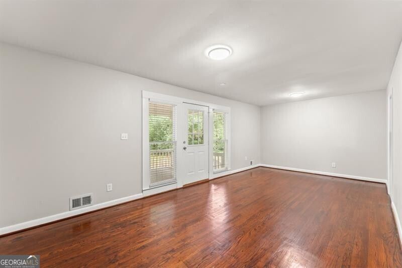 Stop compromising on space. Situated on a massive, .75-acre lot, 2352 Elmwood Circle offers the privacy of the country with the unbeatable convenience of the city. Located just minutes from Truist Park, The Battery, and West Midtown, this updated 3-bedroom, 2-bathroom ranch is the perfect sanctuary nestled in the desirable Forest Acres subdivision of Smyrna. This classic all-brick residence offers a spacious living room with beautiful hardwood floors and an inviting eat-in kitchen featuring crisp white cabinetry, a breakfast bar, and plenty of room to gather. A versatile bonus room provides the perfect space for a home office, playroom, or flex area. The primary bedroom features hardwood flooring and a private en-suite bath, while two additional bedrooms share a well-appointed hall bathroom. Step outside to enjoy the expansive backyard from the covered deck ideal for relaxing or entertaining. Ample parking is available with two driveways and a carport. Freshly painted and move-in ready, this home offers both comfort and convenience with easy access to I-285, downtown Smyrna, Vinings, and Truist Park.