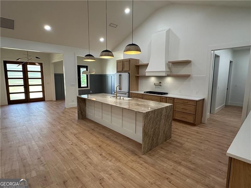 Stunning new construction on 1.14 acres in the heart of Atlanta! This 5-bedroom, 3.5-bath home features an open-concept layout with high-end quartz countertops, double oven, and premium Cafe appliances. The spacious kitchen includes a butler's pantry for added storage and functionality. Luxurious primary suite offers a spa-like bath with a dual-head shower. Ideal for multi-generational living with a private in-law suite. Enjoy outdoor living on the large covered back patio overlooking a private lot. Three-car garage provides ample space for vehicles and storage. A rare combination of space, upgrades, and modern design in a prime location.