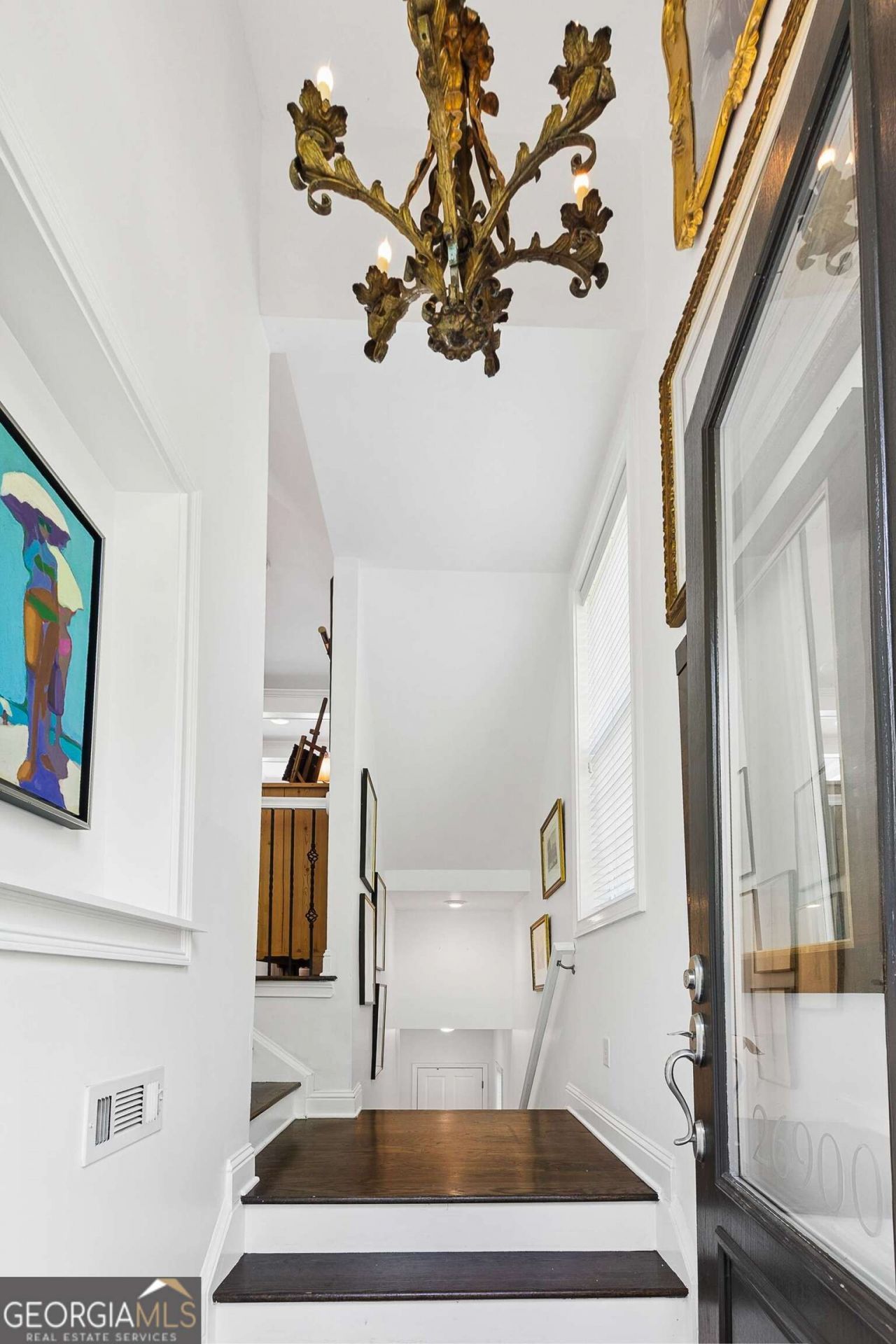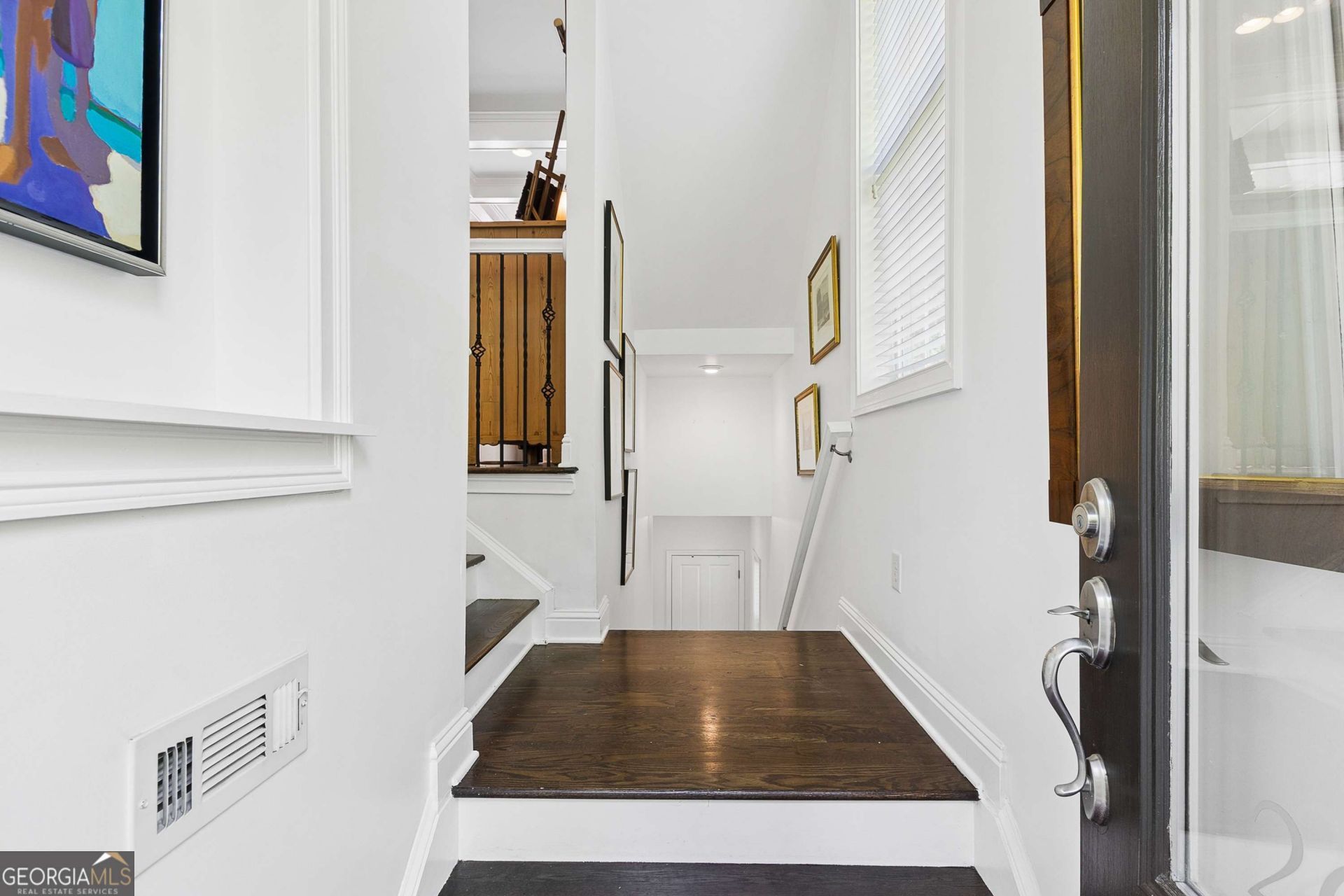 Extraordinary End-Unit Residence with Unparalleled Creekside Setting in Gated Pine Hills Community. Offered for the first time as a resale, this exceptional end-unit is positioned on the most coveted homesite within a private, gated enclave of just 50 residences spanning five wooded acres along the North Fork of Peachtree Creek. Tucked at the very end of the community, this home enjoys a setting that is truly unmatched in Atlanta-featuring sweeping, unobstructed views of the flowing creek, babbling waterfalls, historic mill site, and a serene tree canopy backdrop. None of the residences are located within the flood plain, offering both beauty and peace of mind. Designed with both elegance and livability in mind, this residence is enhanced beyond most in the community with a rare two car garage and an open-concept main level featuring 10-foot ceilings, coffered detailing, custom built-ins flanking the fireplace, exquisite trim work, and solid oak hardwood floors. The spacious kitchen is a standout, anchored by a dramatic arched window that perfectly frames the breathtaking creek and wooded views. Features include newly painted solid wood cabinetry, stone countertops, a center island, and KitchenAid appliances-blending function with timeless design. Refined finishes continue throughout with designer lighting in the entry, a statement crystal chandelier in the dining area, and recessed lighting. New carpet has been installed in the bedrooms and upper hallway. Upstairs are two generously proportioned bedrooms. The primary suite offers tranquil views of the creek and woods and features a tray ceiling along with a well-appointed bath featuring double vanities, a separate shower, a large whirlpool tub, and a walk-in closet with custom shelving. The first floor bedroom or study with full bath provides flexibility for guests or a home office. Two private decks extend the living space outdoor overlooking one of the most unique natural settings available in the city. This unit has its own fenced side yard perfect for dogs. Ideally located this home is just moments from Shady Valley Park with playground, tennis, basketball and soccer fields, and offers convenient access to Buckhead, Brookhaven, Midtown, CHOA, Executive Park/Emory, major highways, and some of Atlanta's best dining and shopping. A rare opportunity to own one of the most distinctive and beautifully sited homes in the area.