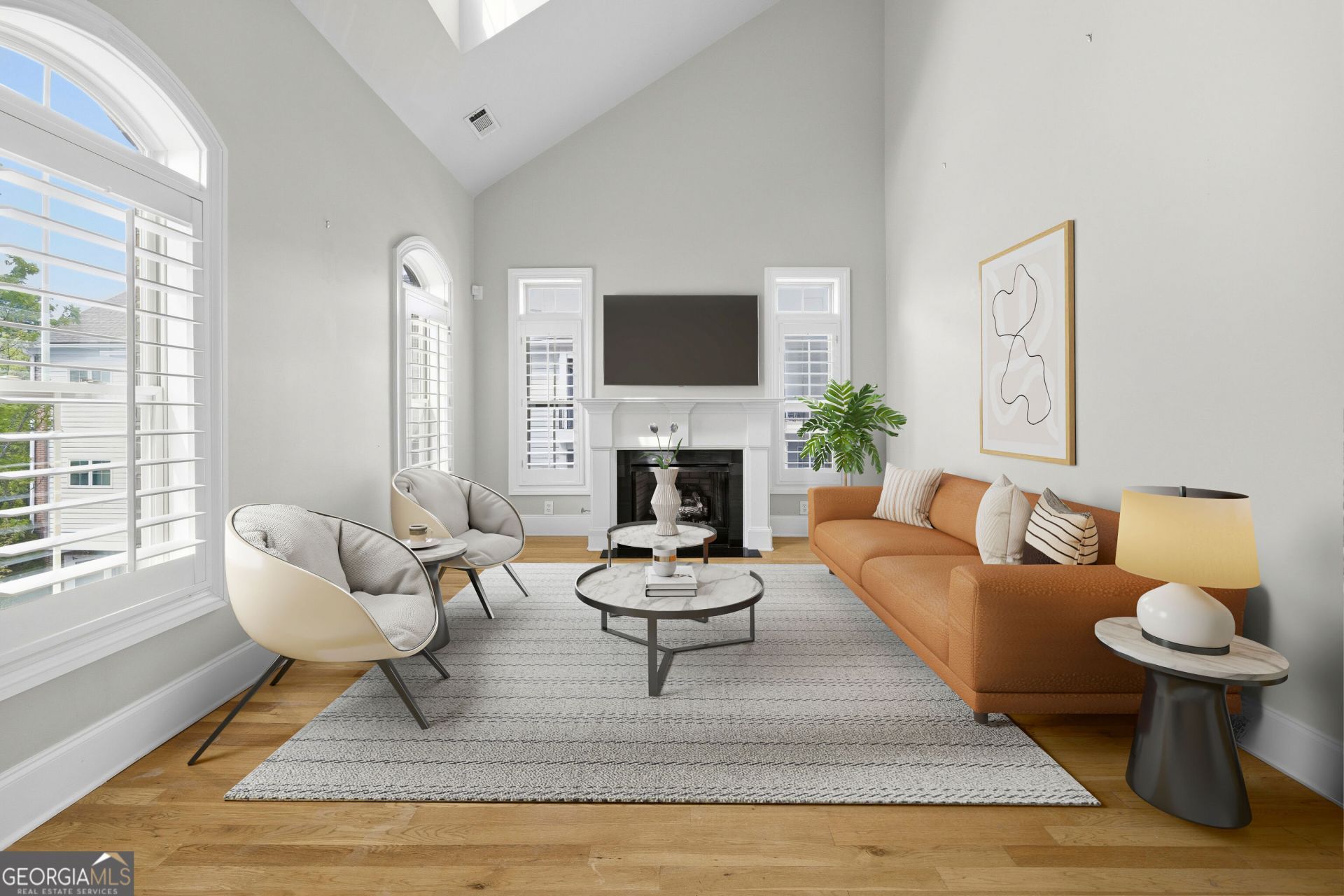 LOCATION, LOCATION, LOCATION! This townhome is in one of the most desirable pockets of Sandy Springs. This rare upper-level end unit offers a unique blend of privacy, charm, close proximity to incredible restaurants and so much shopping. From the moment you step inside, natural light pours through the windows, filling the home with warmth and creating an inviting, airy atmosphere. The main level is anchored by a dramatic vaulted fireside living room, where mornings begin with coffee in the sunlight and evenings wind down by the fire. Hardwood floors flow seamlessly into, leading you into a thoughtfully designed eat-in kitchen featuring stainless steel appliances, generous cabinetry, and a separate pantry. Just off the kitchen, a spacious ensuite bedroom offers flexibility for guests, a roommate, or even a private main-level retreat. Step outside onto the covered back porch overlooking mature trees and local shops. Upstairs, the primary suite feels like its own sanctuary. Featuring a dedicated office or lounge space, it's ideal for working from home or creating a cozy reading nook. The suite is complete with a large walk-in closet, another in the hallway and a well-appointed bathroom with double vanities, a soaking tub, and a separate shower. Beyond the home itself, the lifestyle is what truly sets this property apart. Located in a prime Sandy Springs location, you're just steps from local favorites, boutique shopping, top-rated dining, parks, and the energy of downtown. Take advantage of the free concerts over the summer months. Everything you need is right outside your door, whether it's a quick coffee run, an evening out, or a weekend stroll. The HOA covers exterior maintenance, landscaping, and gas making it easy, low-maintenance living. This is more than a home, it's a lifestyle opportunity in the heart of Sandy Springs.