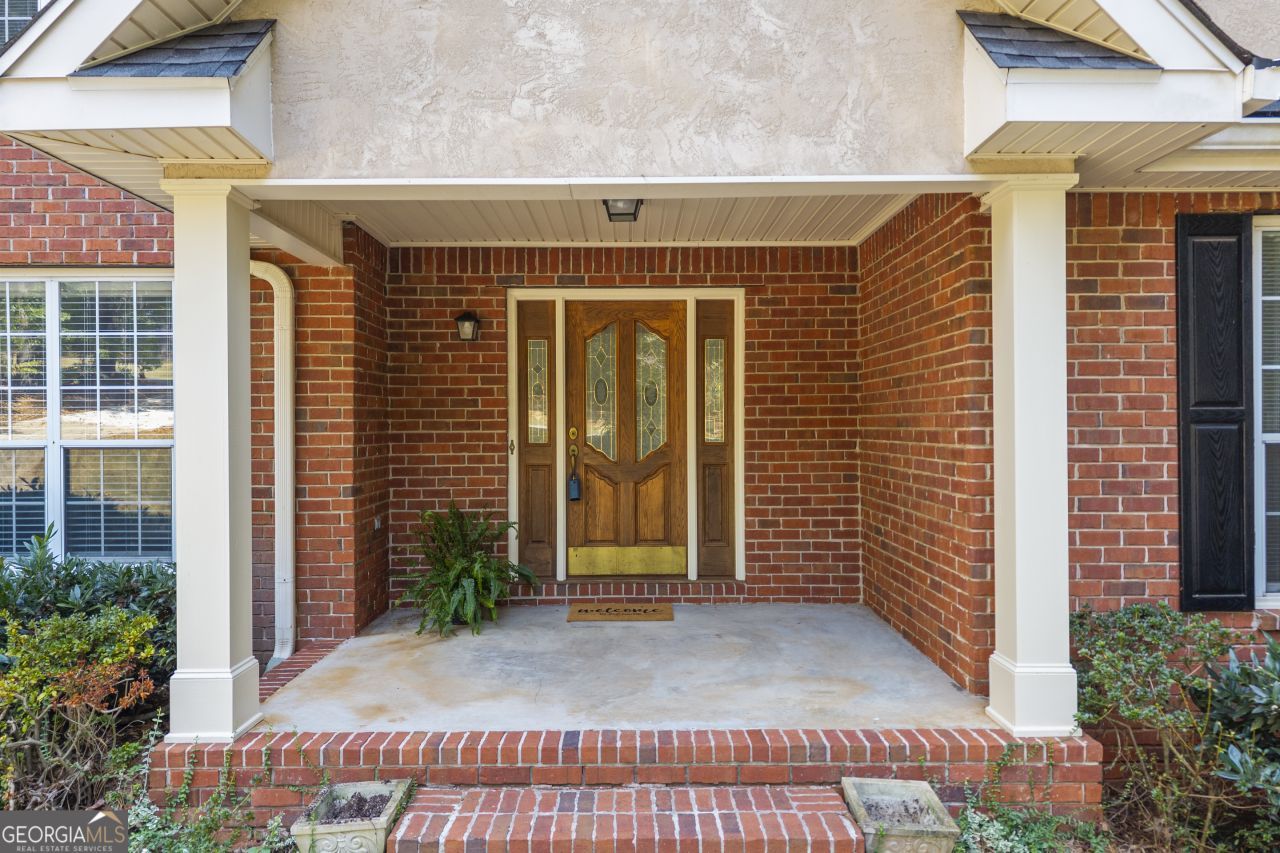 Welcome to this beautifully maintained home in the established Canongate Village subdivision - a peaceful community just 20 minutes from Hartsfield-Jackson Airport and convenient to shopping, schools, and major highways. Situated on a private 1-acre lot, this all-brick residence offers timeless curb appeal with a circular driveway providing plenty of parking for guests. Just one mile from the neighborhood lake, you'll enjoy easy access to a community dock perfect for fishing or relaxing by the water. Step inside from the covered front porch into a welcoming foyer. To the left, you'll find a formal dining room, ideal for entertaining. The heart of the home is the two-story family room, filled with natural light and open to the spacious kitchen. Featuring granite countertops, quality cabinetry, and stainless steel appliances (including a 2-year-old stove), the kitchen offers both function and style. Engineered hardwood flooring flows throughout most of the main level, adding warmth and elegance. Just off the kitchen is a bright sunroom - a perfect spot for morning coffee or unwinding with a good book - with access to a private back deck. The primary suite is located on the main floor and includes a tray ceiling, engineered hardwoods, and a fully renovated en-suite bath complete with a large tiled walk-in shower, double granite vanity, and a spacious walk-in closet. The roof is only 2 years old. Vinyl soffits and the brick exterior add to the low-maintenance appeal of this home. Upstairs, you'll find an ideal home office, two additional bedrooms, a full bathroom, and a versatile bonus room - great for a playroom, media space, or guest retreat. The unfinished basement provides ample storage or could be finished to suit your needs - gym, workshop, additional living space - the possibilities are endless. Don't miss your chance to own this well-appointed home in one of Sharpsburg's most desirable neighborhoods!