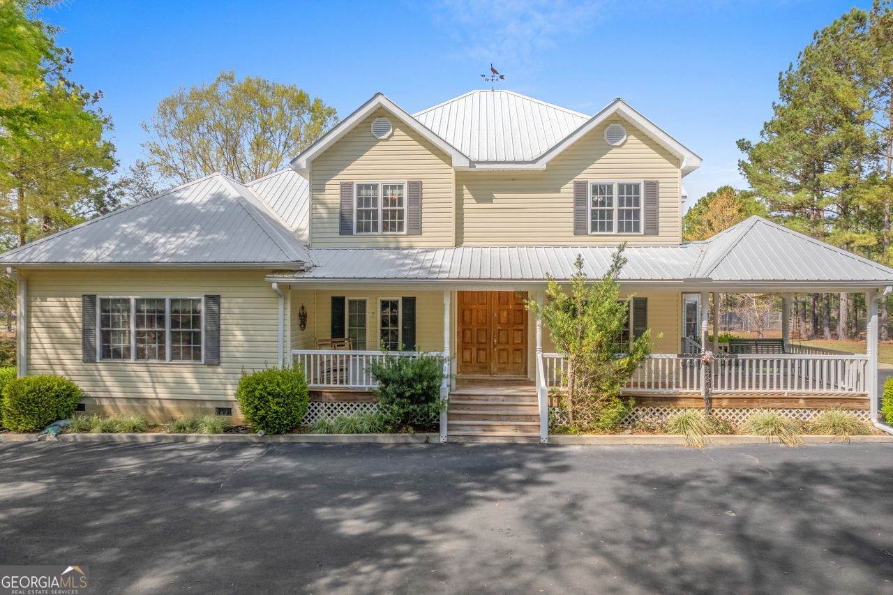 Welcome to 3033 Freetown Road, a spacious country home offering 2,974 square feet on over 10 acres in Sandersville. Built in 2003, this property was designed for comfortable living and practical use. Inside, you'll find beautiful no-knot pine floors throughout. The custom kitchen features all-wood cabinets, durable Corian countertops, and a gas cooktop on the center island. The main living area includes a den with a gas fireplace and a separate bonus room that makes a great home office. The large master suite has its own ensuite bathroom with a separate shower, a garden tub, and double vanities. Step outside onto the large front porch or the back deck, which is partially covered and has a hookup for your gas grill. The property is equipped with a sprinkler system and a paved driveway that extends to the parking pad and the shop. For your projects and hobbies, there's a massive 49x40 shop with an attached 20x30 covered parking area. The property also includes a dedicated parking pad with full RV hookups, two horse stalls, and two wells. You'll also find a half-acre pond and a covered shed perfect for outdoor cooking. If you're looking for a well-built home with plenty of space, functional outbuildings, and room to roam, this is a must-see.