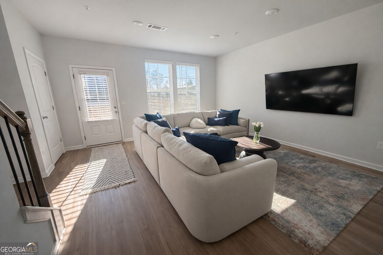 MINUTES FROM FAYETTEVILLE PAVILION & DOWNTOWN FAYETTEVILLE THREE-STORY TOWNHOME MODERN OPEN-CONCEPT DESIGN This stylish three-story townhome offers 3 bedrooms and 2.5 baths, ideally located in the sought-after Fayette County School District. The heart of the home is the chef's kitchen featuring an oversized island with quartz countertops, stainless steel appliances, perfect for entertaining or casual dining. The living area showcases a sleek electric fireplace with luxury vinyl plank flooring throughout the main levels for a modern touch. Upstairs, the owner's suite includes Vaulted ceilings, walk-in closet and a spa-inspired bath with tile and quartz-topped vanities. Additional features include a two-car garage and low-maintenance exterior. Enjoy the convenience of being just minutes from shopping, dining, and entertainment in both Fayette Pavilion and downtown Fayetteville.