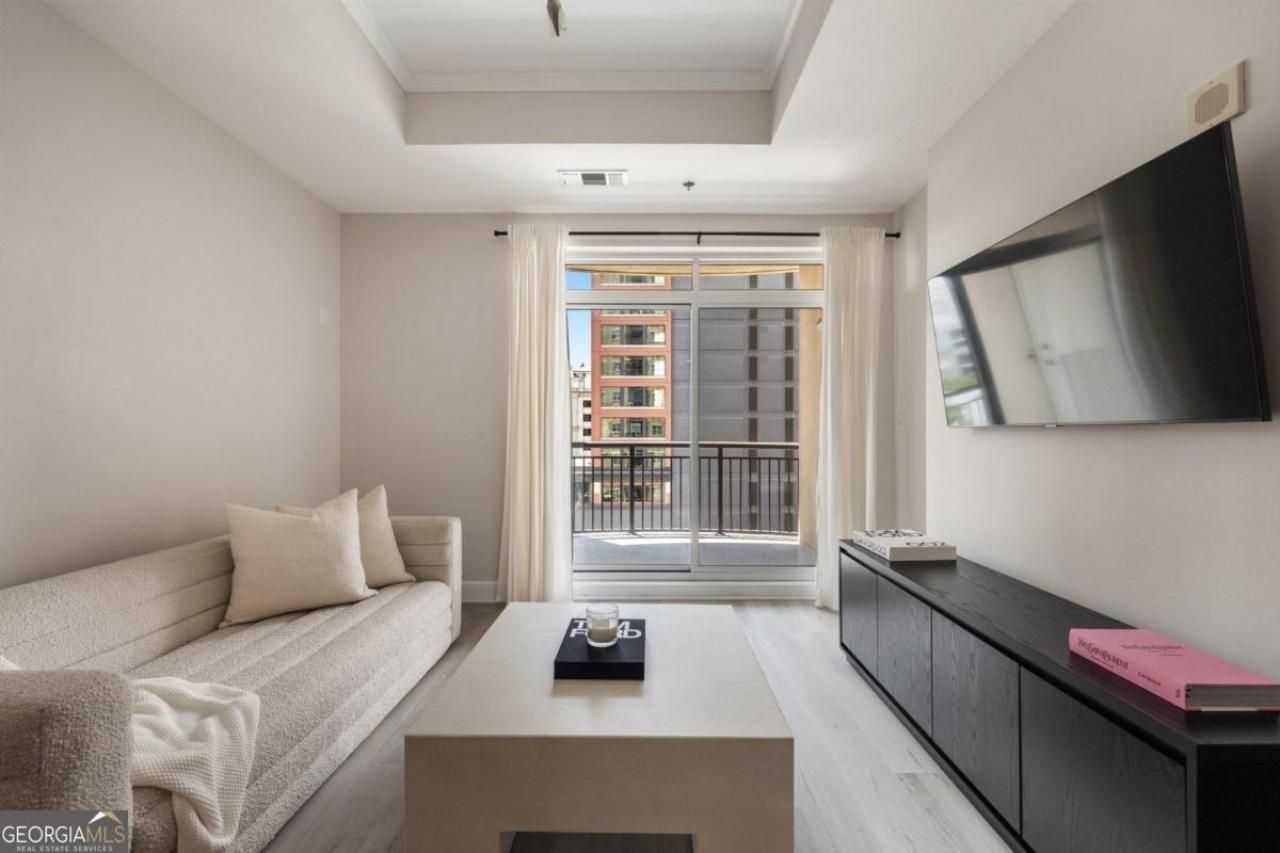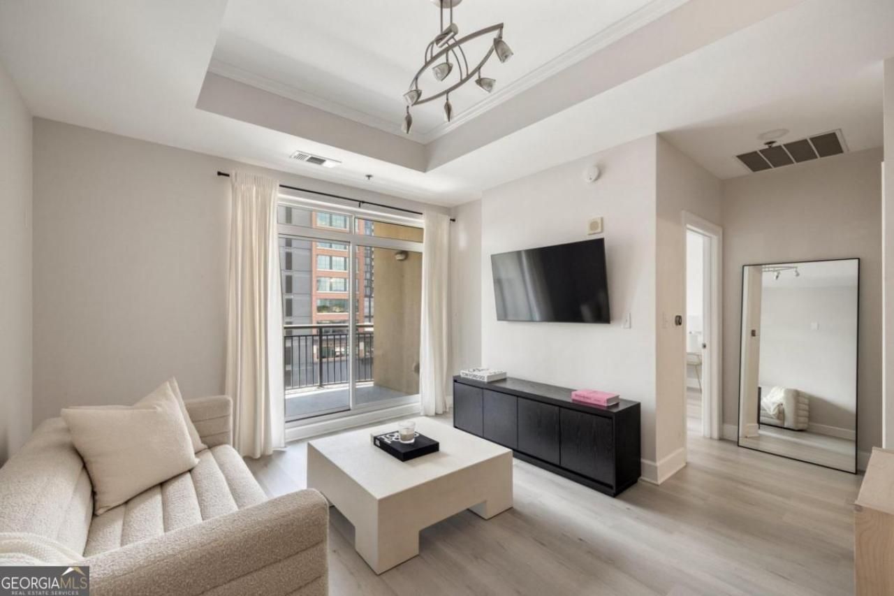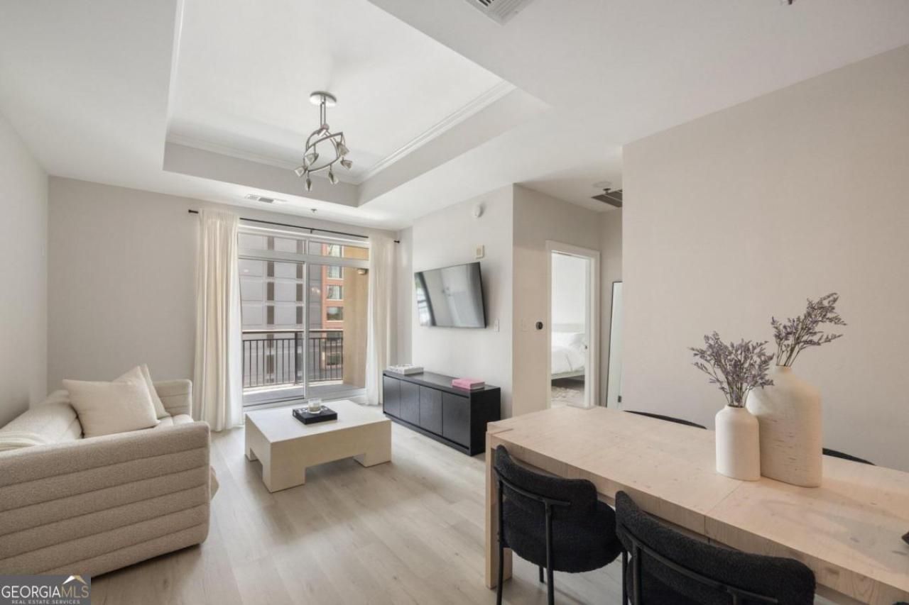Experience modern luxury with breathtaking skyline views from your private balcony in this beautifully upgraded one-bedroom condo, located in the prestigious Paces 325 building in the heart of Buckhead. Perched on the 8th floor, this unit showcases wide plank luxury flooring throughout, freshly painted walls, and sleek canless recessed lighting. The kitchen shines with a stylish new backsplash and stainless steel appliances. The spacious bathroom offers plenty of storage in the vanity, an upgraded fan, and a shower/tub combination. The oversized primary bedroom boasts a large walk-in closet and a new ceiling fan. Additional highlights include a deeded, covered parking space and a Samsung stackable washer and dryer. Residents of Paces 325 enjoy 24-hour concierge service, a newly renovated fitness center, meeting and club rooms, a saltwater pool, and tennis and pickleball courts. Nestled in Buckhead Village, Atlanta's top destination for upscale shopping, dining, and entertainment, this condo offers a luxurious lifestyle in an unbeatable location. DonCOt miss this incredible opportunity!