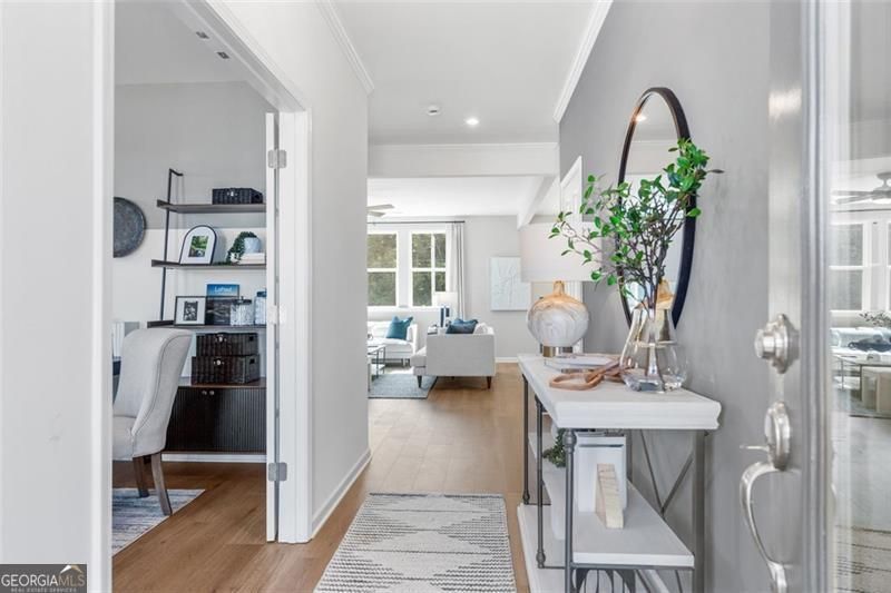 To Be Built - Hickory C | Lot 56 | Customize Your Dream Home Before Construction Starts! LIMITED-TIME OFFER: $25,000 ANY WAY YOU CHOOSE! (Apply toward closing costs, design upgrades- Must Use Preferred Lender) This stunning 4-bedroom, 3.5-bathroom home is designed to impress! The Hickory C welcomes you with an open floor plan that fills every space with natural light. The gourmet kitchen is a chef's delight, featuring 42 Summit Elegant White cabinets, 3CM Fantasy Brown Polish quartz countertops, and a spacious island-perfect for cooking and entertaining. The main level also includes a large office with French doors, offering the perfect work-from-home setup. Upstairs, you'll find four generously sized bedrooms, each with its own walk-in closet. The luxurious owner's suite is a private retreat, showcasing tray ceilings and a deluxe en suite bathroom. For added convenience, the second-floor laundry room is equipped with a sink and cabinetry. Located in a community offering unmatched value, this home boasts the lowest HOA fees in the area, the best price per square foot, and some of the largest homesites available. Plus, enjoy the flexibility of adding a third-car garage on nearly every homesite, providing extra space without sacrificing affordability. Don't miss this opportunity! Call today for exciting new deals and schedule a visit to see your future home. Model hours: Sunday - Wednesday |1 PM to 6 PM Monday - Saturday |10 AM to 6 PM. Photos may include upgrades and non-standard features for illustration purposes only. Actual home may vary based on designer selections and site plans.