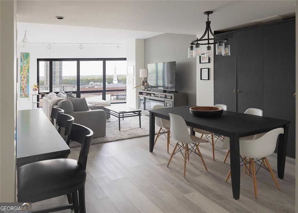 Located at 3475 Oak Valley Road NE, Unit 1450, is walking distance to desirable shopping and restaurants in Buckhead and has spectacular views of Atlanta. This attractive property is a refined residential experience and offers several amenities such as a gym, pool, and friendly staff. The property boasts several updates including fresh paint, removal of the popcorn textured ceiling, brand new stunning quartz countertops that go with the modern aesthetic, new light fixtures, ceiling fan, and LED recessed lighting. The walk-in closet has a completely upgraded system. A brand-new refrigerator with a gourmet ice ball maker and fully updated half bath is included in the condo. The kitchen is designed for both functionality and style, featuring a kitchen bar perfect for casual dining or entertaining. The bedroom is a tranquil retreat, enhanced by floor-to-ceiling windows that invite natural light and offer expansive outlooks. Imagine waking up to the gentle morning light, creating a serene and inviting atmosphere within your private space. The bathroom provides a spa-like experience with its walk-in shower, double vanity, and large soaking tub. This property offers a blend of style and practicality, perfect for enjoying the best of city living. The condo also comes with a designated parking space and storage area.