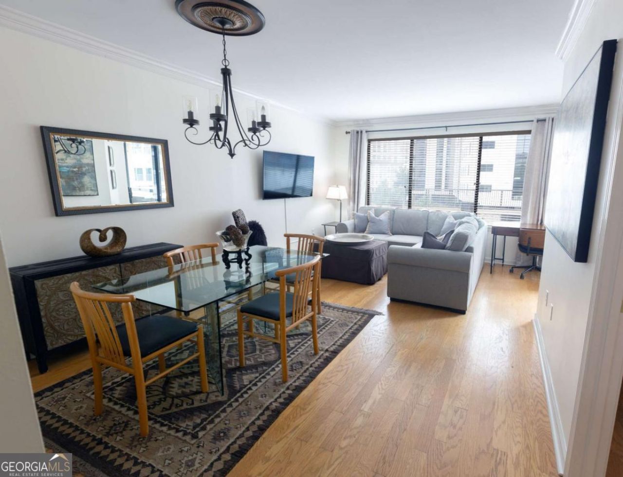 Beautifully furnished in the heart of Buckhead! Turnkey ready w/ electric, water & maid w/ linen and towel service. Fully furnished condo featuring hardwood floors, Silestone and granite countertops, tumble marble and hardwood floors, Stainless steel appliances and a private balcony! Gated Parking-- 1 assigned parking in secured parking deck. Extra storage closet. The large sectional sofa converts into a queen bed, and the ottoman opens into a twin bed, providing two additional sleeping options. The Grandview offers sleek resort-style amenities: Cardio and Weight room, Onsite electric car charging stations, pool, hot tub and sauna, outdoor grilling area with 3 grills, 18-seat theater room, business center, club room and library. The building offers 24-hour concierge service, gated entrance, gated parking, and complimentary visitor parking. Water/Sewer is included with HOA. Conveniently located next to Marie Sims Park - perfect for an afternoon stroll or walking pets and adjacent to Path 400, 2 blocks from Lenox MARTA Gold Line, Lenox Mall, Phipps Plaza, the new Nobu Hotel, Lifetime Fitness, and myriad fine dining and shopping opportunities. Best location in Atlanta!