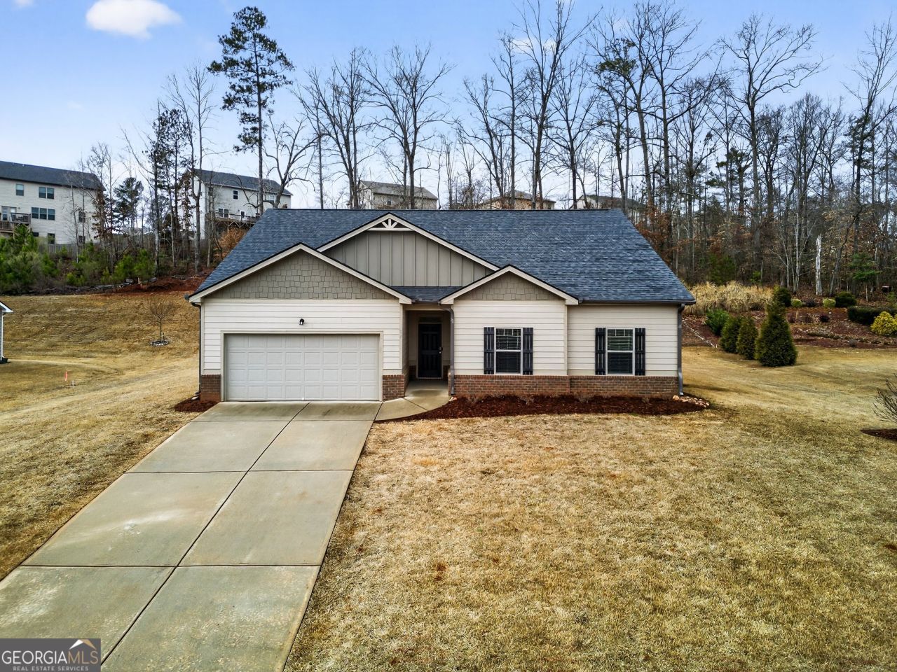 Welcome to 35 Blossom Wood Drive in the sought-after Heritage Pointe community of Senoia. This beautifully maintained true ranch plan offers 4 bedrooms and 2 full baths with over 2,000 square feet of open-concept living space designed for both comfort and functionality. Built just 7 years ago, this home blends modern efficiency with timeless style. The spacious open floor plan creates an easy flow between the kitchen, dining, and living areas-ideal for entertaining or everyday living. The kitchen features stainless steel appliances, ample cabinetry, and generous counter space. Smart home accessories add convenience and peace of mind. The oversized bedrooms provide flexibility for family, guests, or home office space, and each offers walk-in closets for abundant storage. Whether you are looking for room to grow or the ease of single-level living, this home checks the boxes. Step outside to a backyard that truly stands out. Enjoy seasonal blooms and homegrown produce with established blueberry bushes, hazelnut trees, and a variety of native shrubs-creating a private and inviting outdoor retreat. Residents of Heritage Pointe enjoy resort-style amenities including an aquatic center, sauna, kiddie pool, playground, tennis courts, basketball courts, soccer field, and more. This well-kept HOA community is less than 10 minutes from fine dining, shopping, and entertainment in downtown Senoia and just 35 minutes south of Hartsfield-Jackson Atlanta International Airport