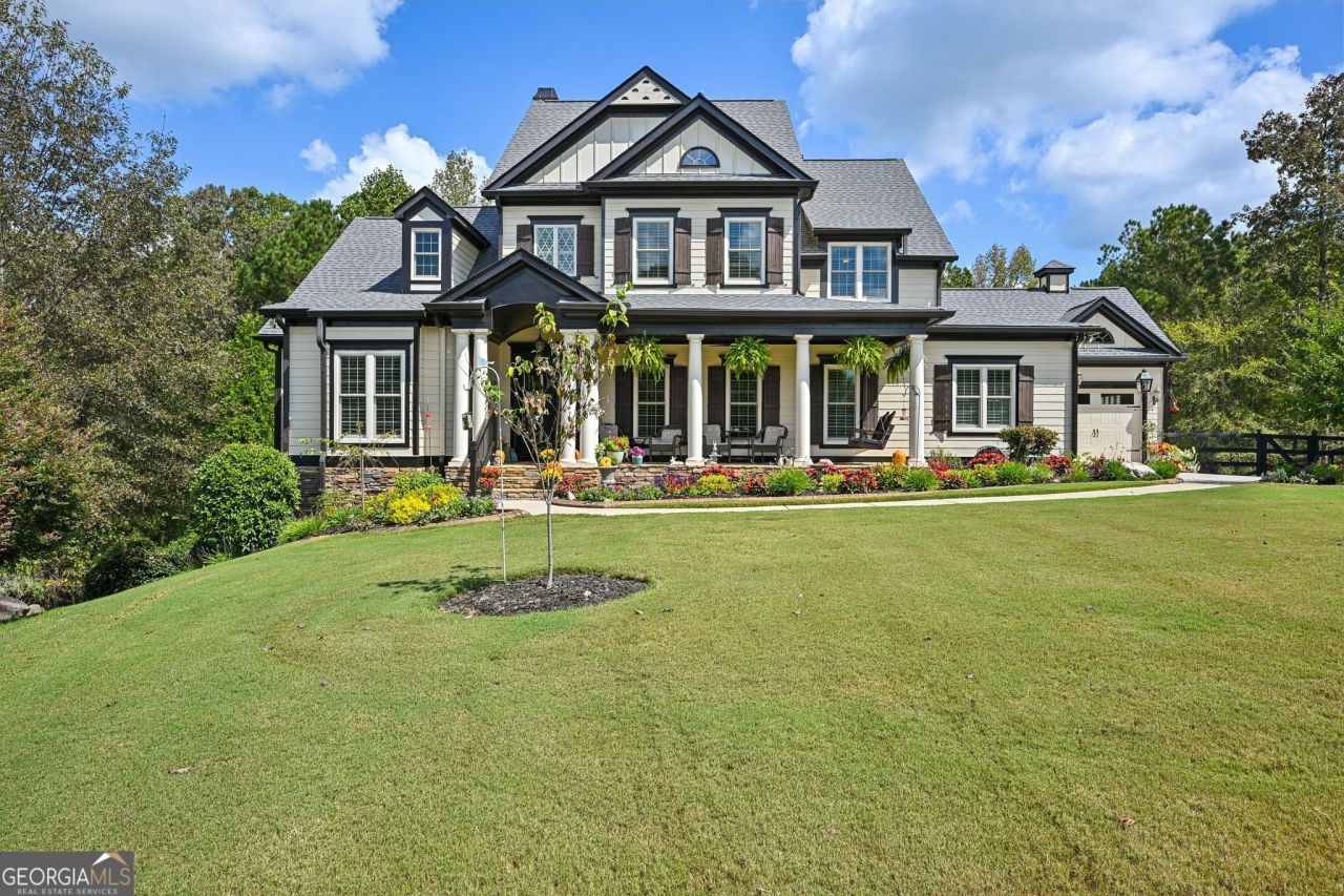 This home truly has room for everyone that perfectly blends elegance, functionality, and comfort. Featuring multiple levels of living space, this property offers everything you need for luxurious everyday living and entertaining - from a main-level primary suite to a fully finished basement with its own kitchen. With the primary bedroom on the Main Floor you can enjoy convenience and privacy in the spacious owner's suite, complete with an ensuite bath and ample closet space. The main living area flows seamlessly onto the deck with lake views, perfect for indoor-outdoor living. Walk into the well-appointed kitchen with modern appliances, plenty of counter space, and storage for the home chef. The kitchen flows into a breakfast nook and keeping room with an additional fireplace. Off of the breakfast nook there is a screened in sunroom with lake views! Don't forget the charming front porch featuring ceiling fans and a swing, one of the largest in the neighborhood, ideal for warm summer evenings. Three spacious bedrooms and two full bathrooms offer comfort and flexibility for family or guests. A versatile loft area perfect for a playroom, office, home gym, or reading nook. The finished basement includes 2 bedrooms, 1 full bathroom, and a full kitchen. Ideal for in-laws, guests, or a private rental suite. Walk out directly to the lower deck, providing additional outdoor living and entertainment space. Newly installed fence and beautiful landscaping in the front and back will not disappoint!