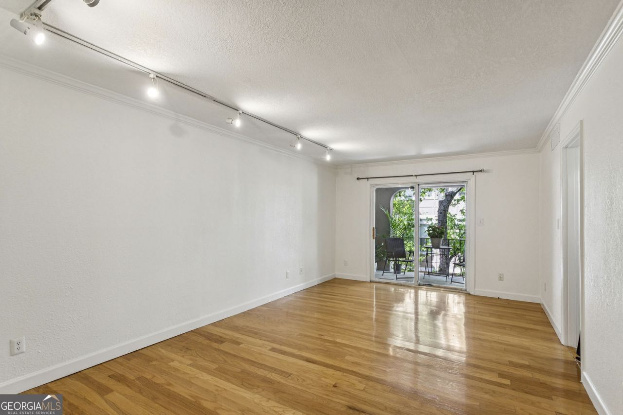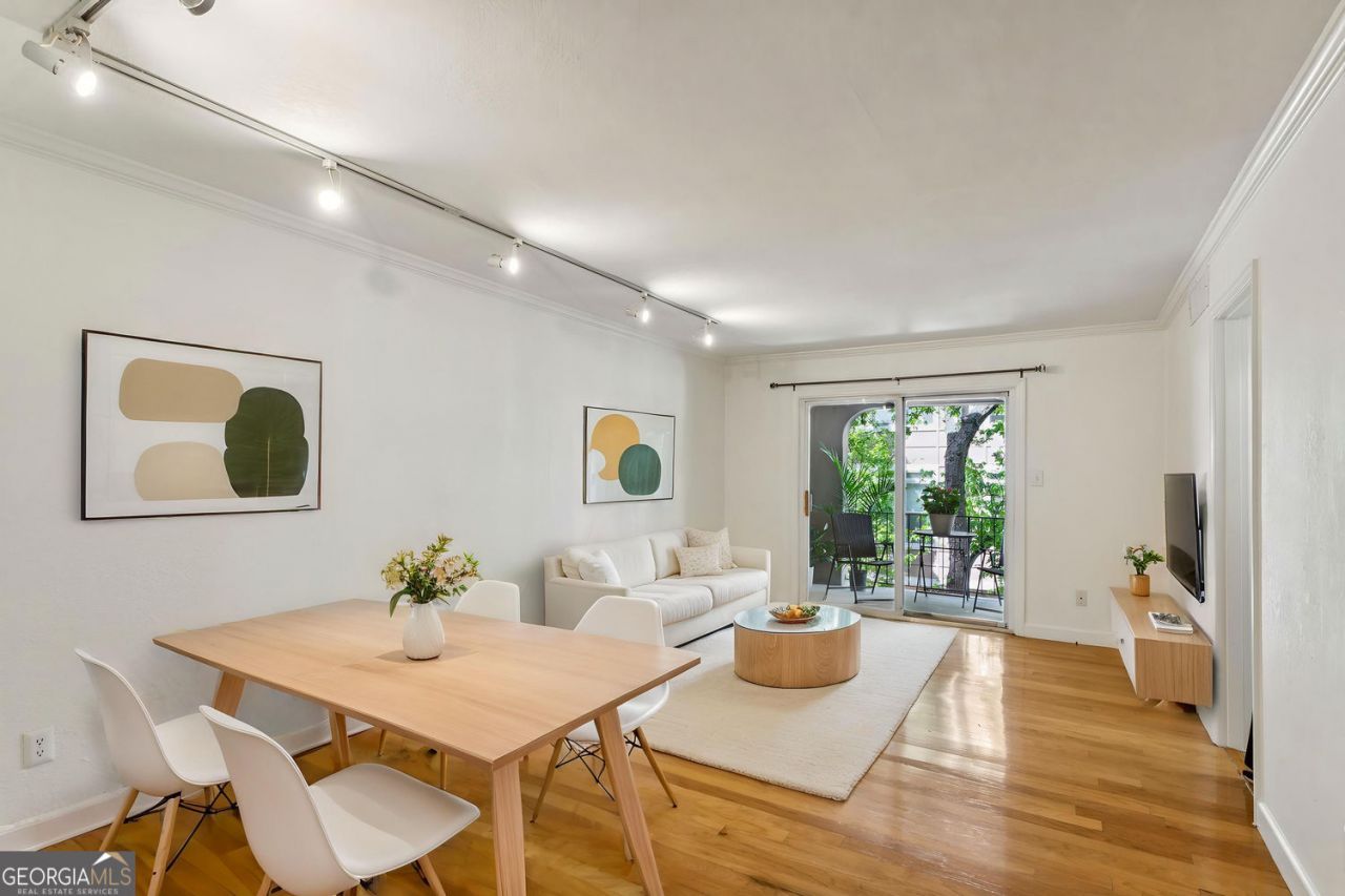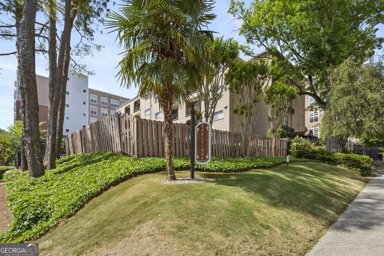 Perfect 10 unit in The Barcelona, a quiet unique condominium building at the entrance to Historic Garden Hills in the heart of Buckhead. This unit is in pristine move-in condition with all new paint including ceilings and trim, new carpet in bedroom, plus new HVAC compressor. Hardwood flooring throughout the Living Room, Dining room, and Kitchen. New carpet in bedroom with a walk-in closet plus a secondary closet. Master bath with tub/shower combination and new KOHLER toilet. Enjoy the covered patio off the Living Room. Galley kitchen features mirrored backsplash, stainless refrigerator, DW, gas range, and new microwave oven. Pantry. Relax poolside by the Barcelona swimming pool! Walk to Bagley Park where you can catch a 'Buckhead Baseball' game, play tennis or have a picnic. Best Buckhead location within walking distance of fine dining, Buckhead Village, & Atlanta International School. Absolutely the best buy for a one bedroom condo in Buckhead!