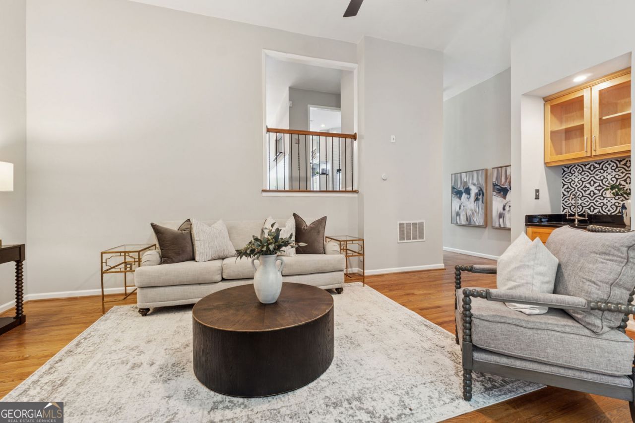 Back on the market - no fault of property, never inspected! Welcome to a Buckhead townhome that understands the assignment: great light, great flow, and great entertaining energy. Step inside and the vaulted ceilings in the foyer and living room immediately say, this is bigger than it looks. Sunlight pours in, setting the tone for easy, everyday living. The kitchen keeps things classic-with-a-twist-white cabinetry, black granite countertops, stainless appliances, and a built-in wine rack and hutch because hydration comes in many forms. The main level is where this home really shines. Hardwood floors throughout, a proper dining room for hosting (or takeout that deserves a table), and a wet bar with its own sink-because no one wants to wash glasses in the kitchen mid-party. Out back, one of the largest private patios in the community awaits, complete with built-in seating and room to spread out, relax, and entertain without borrowing your neighbor's space. Upstairs, all three bedrooms live together-no awkward layouts here. The primary suite features vaulted ceilings and a spa-like bath with stone tile and a generous granite vanity. Two additional bedrooms and a full bath flex easily as guest rooms, offices, or that I'll figure it out later space. Behind the scenes, this home has been busy getting better: LVP flooring upstairs, new carpet on the stairs, a UV light sanitation system added to the HVAC, a brand-new front door, newer washer, dryer, and dishwasher, plus fresh interior paint throughout. Translation: move in and get on with your life. Set in a private community of just eight homes off Roswell Road, this townhome offers plentiful guest parking and no rental restrictions (rare, we know). Directly across from Blue Heron Preserve and Nancy Creek, and just blocks from Chastain Park, outdoor escapes are basically built in. Smart layout. Great upgrades. Excellent location. And just enough personality to make it memorable.