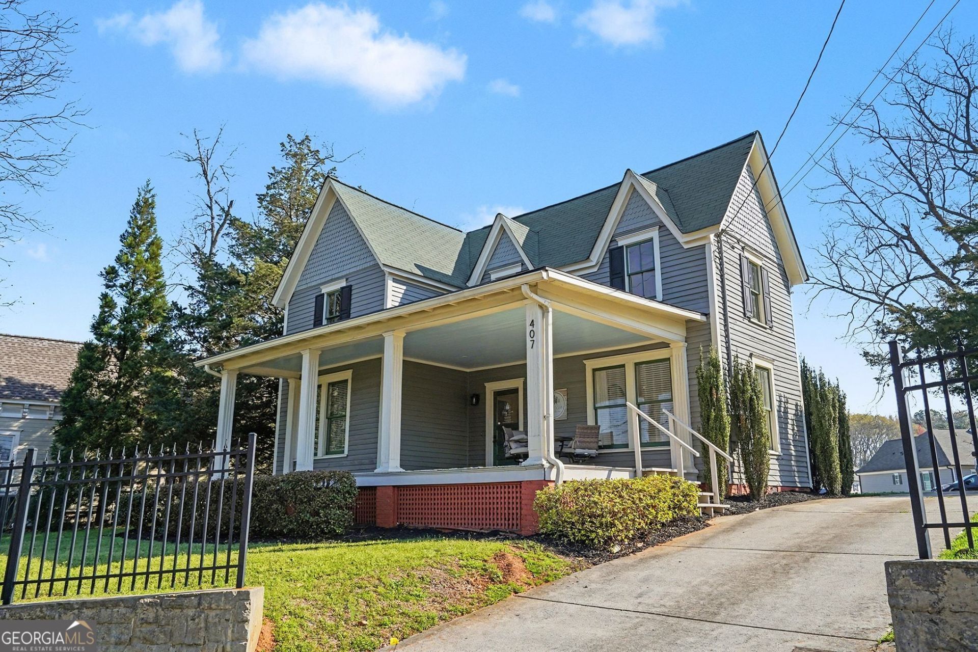407 Atlanta Street is a historic office located at the southern gateway of Historic Marietta. It has high visibility on Atlanta Street and ample room for signage. It was completely rehabilitated in 2015. It has 2,043 square feet, 5 offices, conference room, kitchen, and 2 baths. The property features heart of pine floors, 3 fireplaces, and new systems.