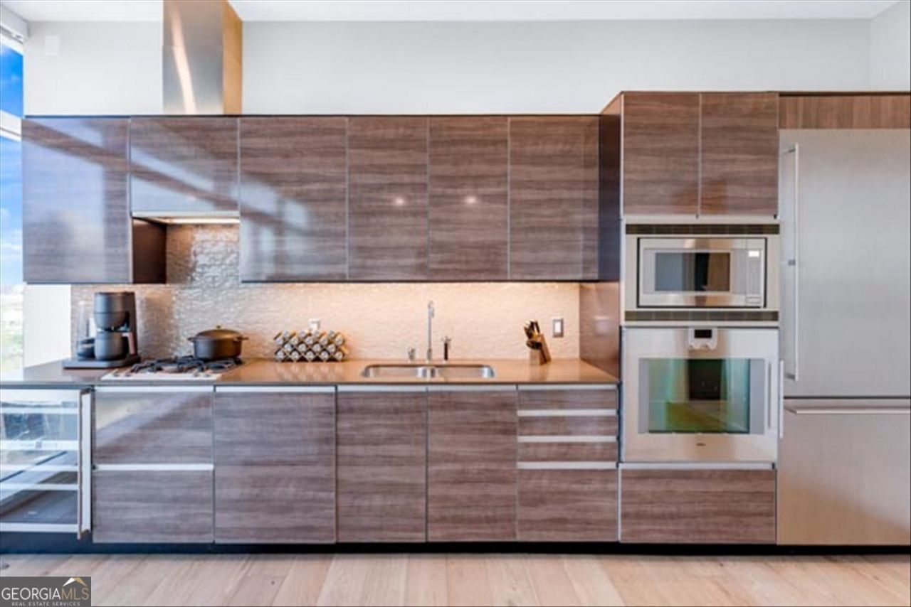 Experience the pinnacle of luxury living in this impeccably renovated one-bedroom gem at The W Downtown Residences, soon to be the JW Marriott!! Step into a world of opulence with high-end modern finishes, including Gaggenau appliances, garage parking, 24-hour concierge, a full-service spa, fitness center, and an awe-inspiring sky pool. Imagine enjoying breathtaking sunsets and panoramic cityscapes from your private space and exterior balcony, thanks to the westward-facing view. This stunning abode features newly installed hardwood flooring, plush carpet, fresh custom paint throughout, and not one, but two California Closet systems with state-of-the-art motion switch LED lighting, ensuring optimal storage and organization. The kitchen is a culinary dream, boasting premium appliances, a new backsplash, USBC/USB charging outlets, and sleek finishes. The bathroom is nothing short of a sanctuary, with a Restoration Hardware vanity, custom tile work, a remote-controlled bidet toilet, and modern plumbing fixtures. Stay comfortable year-round with a brand-new Carrier HVAC system with a Honeywell programmable thermostat and a new water heater system. Updated electrical devices and plumbing enhancements not only improve utility billing efficiency but also enhance your living experience. Revel in the sophisticated ambiance provided by all LED lighting, including under/above counter lights, and the advanced Lutron Grafik T dimming system wall switches. Additional extravagant upgrades include automated window shades and Max Elite 35 ceramic-coated film window tinting on all floor-to-ceiling windows, ensuring privacy and temperature control. Enjoy the convenience of an in-wall, 90 LCD screen with a remote-controlled up-down and side-to-side adjustment bracket to find that perfect viewing angle. Located just one block from the on/off ramp of I-75/85, this prime location offers swift access to the city's major thoroughfares. A leisurely 0.5-mile walk takes you to the Georgia Aquarium, World of Coke and Centennial Park. The Civic Center MARTA Station is a mere 5-minute walk away, providing a convenient 22-minute train ride to Hartsfield-Jackson International Airport Station. Discover the epitome of urban elegance and convenience in this extraordinary residence. Come and see all the wonders this home has to offer!