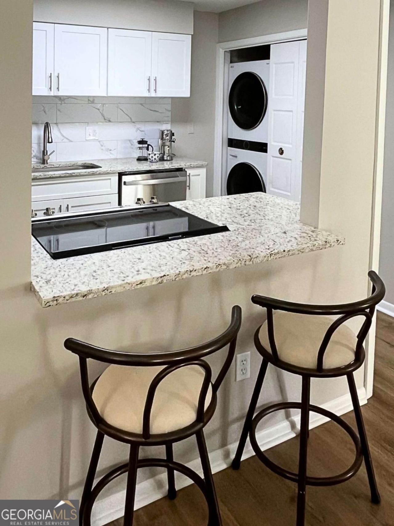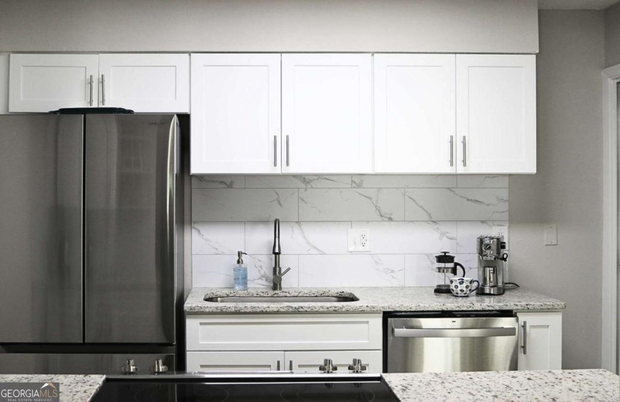 Impeccably updated and nestled within a peaceful, wooded enclave, this Sandy Springs condo offers an unbeatable location. Enjoy walkable access to restaurants, shopping, and everyday conveniences, all while remaining just a short drive from I-285, Chastain Park, world-class entertainment, and local parks and trails. Abundant natural light warms the modernized open floor plan, featuring a kitchen that overlooks the generously sized living room and dedicated dining area. The layout extends into a bright sunroom, providing a versatile space easily adaptable to your needs-whether as a home office, reading nook, playroom, or art studio. The thoughtfully updated kitchen is appointed with granite countertops, custom white cabinetry, new stainless steel appliances, a breakfast bar, and a spacious pantry. In the owner's suite, you'll find a roomy walk-in closet and an updated bath featuring a designer tile shower, a contemporary vanity, and modern fixtures. All-new resilient luxury vinyl flooring, fresh carpet, and stylish hardware throughout enhance this comfortable place to call home. Residents also enjoy fantastic neighborhood amenities, including a pool with a cabana bar and covered entertaining area, tennis courts, a car-wash station, and a tree-lined dog park. Move-in ready with the following included: refrigerator, washer, dryer, water/sewer, trash collection, and full use of community amenities.