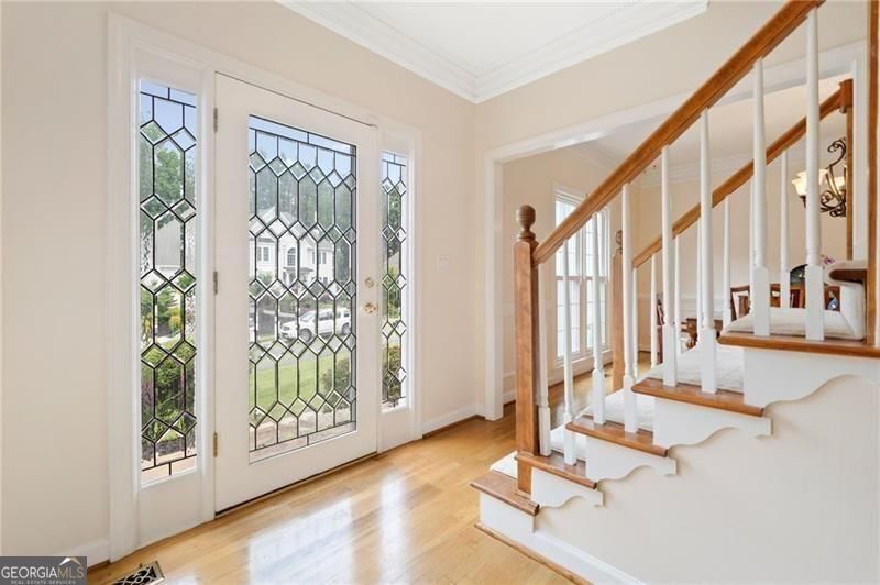 Wow, check out this incredible value in Brookstone! Welcome home to this lovingly maintained home with lots of space at an excellent price. Located on a charming and convenient street, this property offers room for everyone. Enter the home from the stone porch into the foyer flanked by formal dining room on left and living room/office on right. Simply add french doors to the living room for a private, large office space on the main level. The handsome, fireside family room is cozy and opens to the chef's kitchen. The spacious, sunny kitchen is the heart of the home with a vaulted breakfast area/keeping room with fireplace. The chef's kitchen features an island, custom cabinets, solid surface counters, backsplash, updated lighting, pantry, desk area, and newer appliances. The large laundry room and powder room are on the main level. This home offers front and back stairs that ascend to a spacious upper level with huge bonus/media/flex room and four bedrooms. The primary suite includes a walk-in closet and updated spa bathroom complete with standing tub and huge shower, double vanities and linen closet. The upper level is complete with three secondary bedrooms and a full bathroom with double vanities. The walk-in closet in the bonus/media room is plumbed and ready for an upper level laundry room. The full basement features another family/media room, game room, and work out area. Lots of storage also in the basement with daylight and walk-out access. Don't miss the expansive, wooded, level backyard... ready for a pool or play area. The back deck is perfect for entertaining, enjoying the peaceful privacy, and outdoor enjoyment. The side-entry, two garage has storage and workshop space....and ample parking space on the newer driveway. This home has durable hard coat stucco and concrete siding. Enjoy the award-winning swim, tennis & playground amenities that Brookstone offers. Convenient to shopping, schools ... and Brookstone's Country Club is an option for homeowners. NEW ROOF, new paint, new light fixtures, newer water heater, newer driveway, simply too many features to mention here. Schedule a showing today! Seller is offering a $3K flooring allowance in the list price.