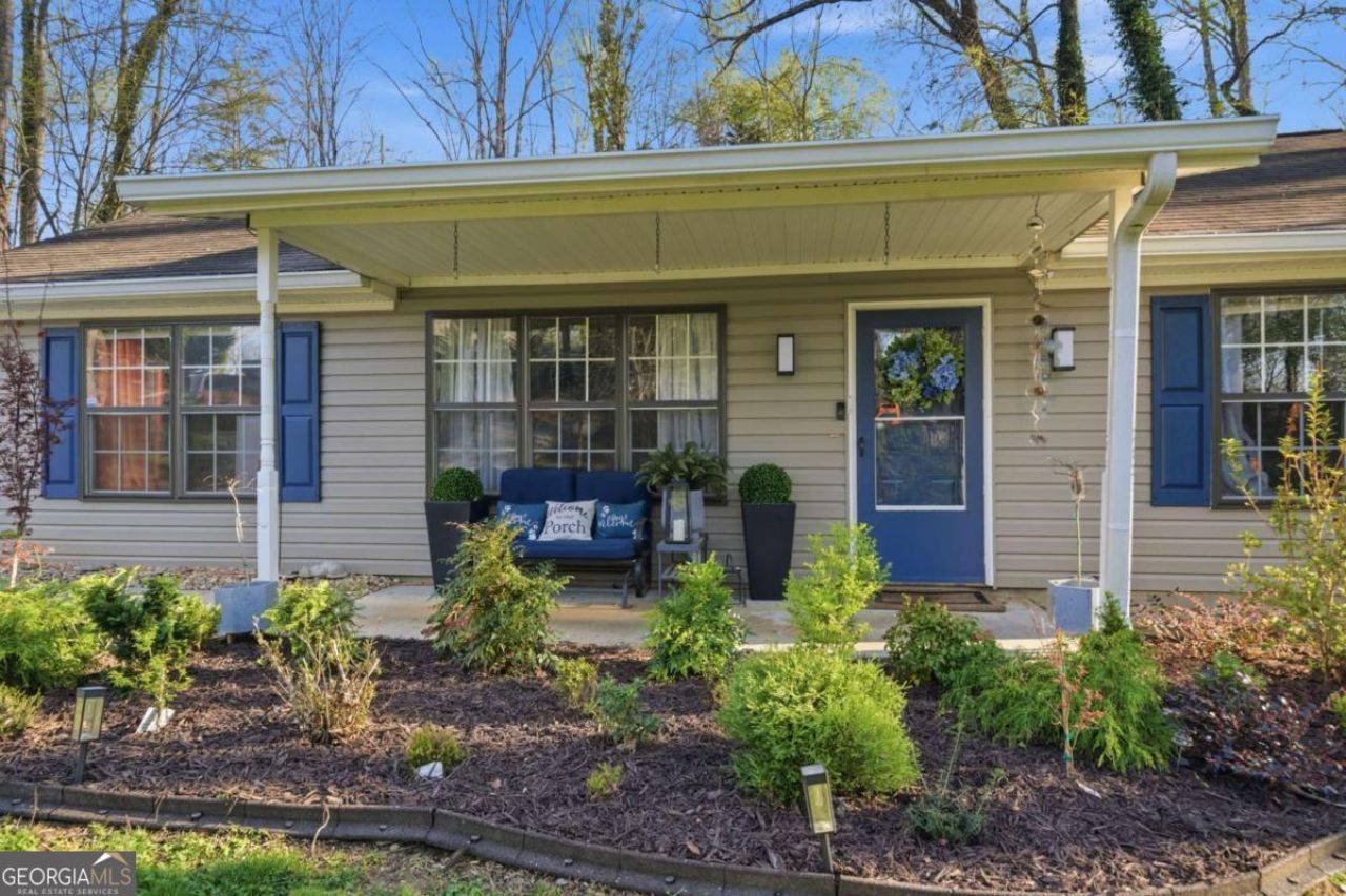 Welcome to the peaceful, relaxing life you've been dreaming of! Nestled in a quiet, hidden gem neighborhood on the shores of Lake Lanier, this beautifully updated ranch home offers the perfect blend of modern style and outdoor adventure. Step inside to find a home designed for both beauty and ease. The beamed vaulted ceiling and natural light from front to back welcomes you as you enter the great room. The stunning kitchen is real treat, featuring gorgeous quartz countertops that pop beautifully against custom blue cabinetry and white backsplash. Recent updates extend to the primary bath, which boasts new cabinetry and double sinks, updated lighting, and fresh flooring. With easy-care laminate throughout the entire home, you can spend less time on chores and more time enjoying the incredible lake lifestyle. Relax on your inviting front porch or retreat to the private backyard cabana that stands over pavestone rock and enjoy total tranquility. This gated community offers a resort-style experience with amenities that are truly second to none: Boater's Paradise: Residence enjoy community boat slip - park your boat at no additional charge, a dedicated storage area for trailers/boats, and a wide community boat ramp for easy water access. Stay active with on-site tennis and pickleball courts, swimming pool, and clubhouse. The community offers events, social clubs. Hop on your golf cart to visit neighbors, count the deer, or feed the geese. Conveniently located with easy access to Gainesville, Dawsonville, and Dahlonega, you are never far from shopping, dining, and entertainment. This home is situated within the highly-regarded Hall County School District, offering an amazing lifestyle at an unbeatable price. Your lake life starts here-move in and start making memories today!
