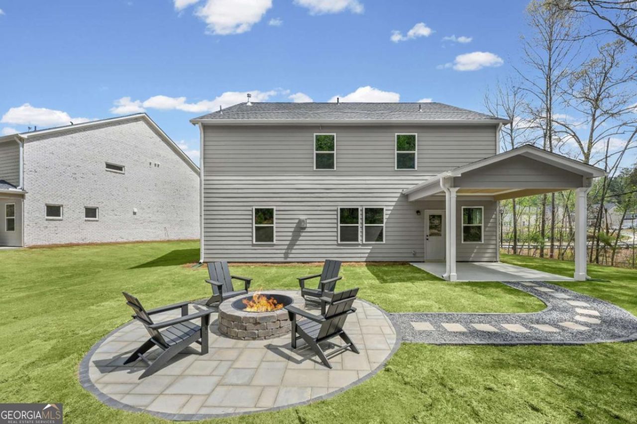 Welcome to the beautiful Mitchell plan at Briar Creek, crafted by Pulte Homes. From the moment you enter, you're greeted by a spacious formal dining room, perfect for hosting memorable dinners and special gatherings. The open-concept kitchen and living area, complete with a cozy fireplace, create an inviting space ideal for both entertaining and everyday living. The kitchen shines with stylish quartz countertops, white cabinetry, and stainless-steel appliances, blending elegance with functionality. Step outside and discover a true highlight of this home, a private backyard with only one neighboring home, offering added peace and seclusion. The space is thoughtfully enhanced with a firepit, making it perfect for outdoor enjoyment year-round. Whether you're gathering with friends on cool evenings, roasting marshmallows with family, or simply unwinding under the stars, this backyard retreat adds warmth and charm to your lifestyle. The main floor also includes a guest bedroom and full bath, ideal for visitors or multi-generational living. Upstairs, you'll find a convenient laundry room and a versatile loft space, perfect for a home office, media room, or cozy retreat. The owner's suite offers a peaceful escape with a tray ceiling and a spacious walk-in closet. At Briar Creek, enjoy the tranquility of suburban living with shopping and dining just minutes away. The new Grady Emergency Center will be only 10 minutes from the community, and frequent travelers will appreciate the quick 20-minute drive to Hartsfield-Jackson International Airport. Available Spring 2026! Come explore the Mitchell plan and experience the perfect blend of comfort, style, and enhanced outdoor living. Exterior pictures represent actual home. Interior photos are of model representation.
