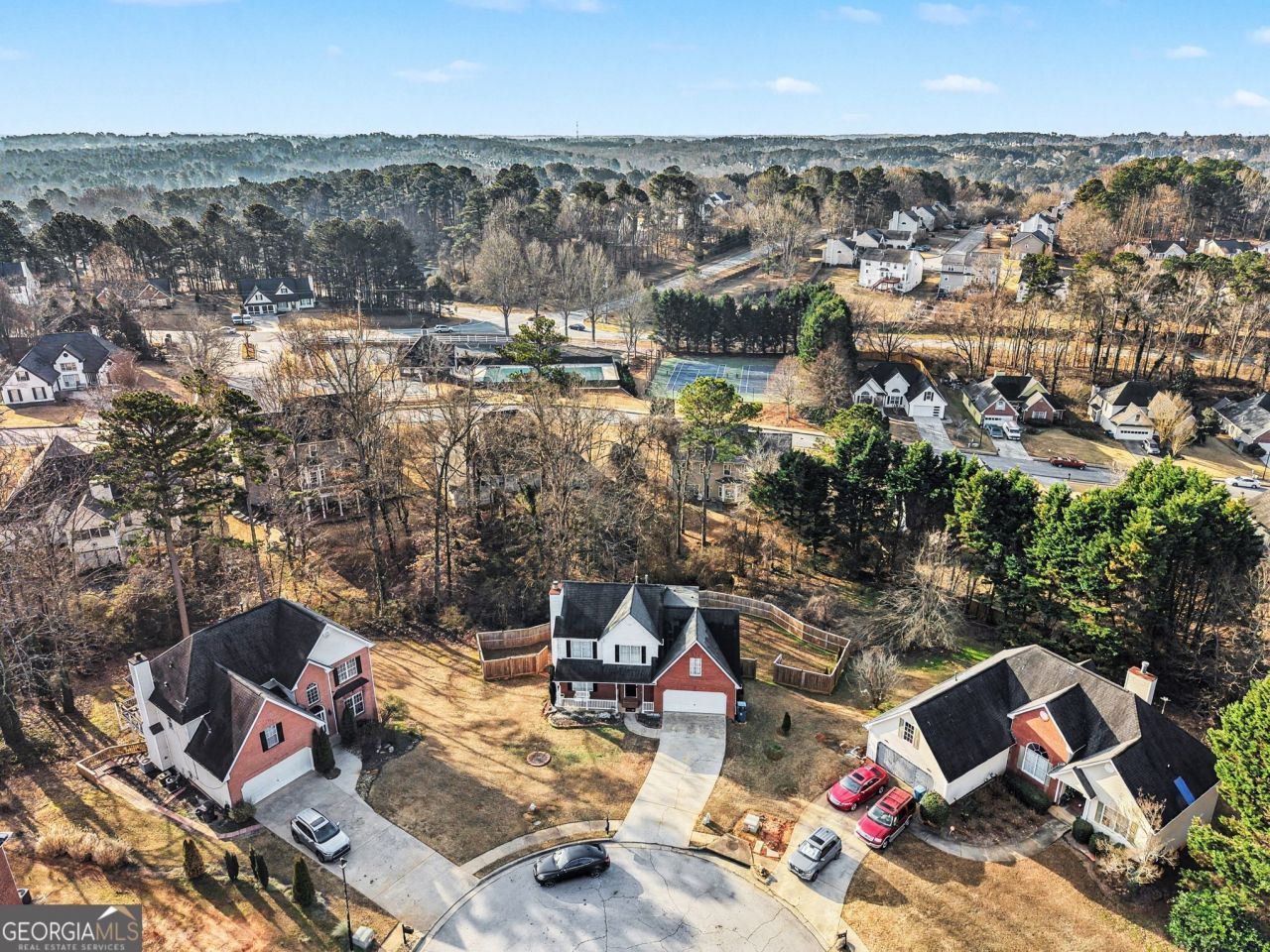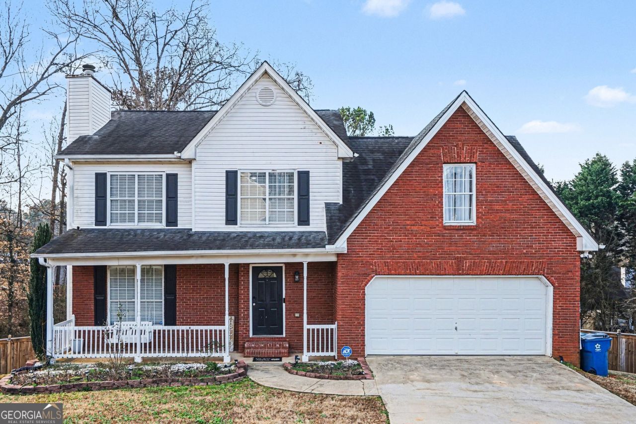 SELLERS ARE RELOCATING. ALL OFFERS WILL BE CONSIDERED on this 2600 square feet of stylish living! Step inside this beautiful 4BR/2.5BA spacious brick-front home on a FINISHED BASEMENT. Situated on a cul-de-sac with a long driveway and charming rocking-chair front porch, the home is set on a fenced lot, offering a generous backyard and an elevated deck ideal for outdoor dining, grilling, and play. Inside, you are greeted by updated flooring and soft gray walls. The main living area features an inviting family room, wide-plank floors, and graceful arched openings that flow into the dining room with wainscoting and a modern light fixture-perfect for hosting. The kitchen showcases white cabinetry, subway tile backsplash, granite countertops, and stainless-steel appliances, including a gas range and French-door refrigerator, all set on glossy tile floors that reflect natural light from the bay-window breakfast area. A dedicated laundry room with front-load washer and dryer stays with the property. Upstairs, showcases a luxurious owner's suite offering tray-ceiling, spacious walk-in closet with built-in shelving, and spa-style bath with dual vanities, soaking tub, overlooked by a large window and separate shower. Additional bedrooms are well-sized and versatile. Venture downstairs to the finished basement with private exterior entry providing ideal flex space for a media room, home office, or guest suite. With its cul-de-sac setting, modern interior finishes, fenced yard, and expansive deck, this home delivers style, comfort, and privacy in a sought-after Lawrenceville location-ready for its next owner to move in and enjoy.