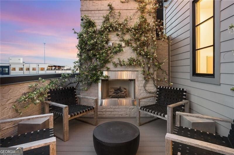 Luxurious, sleek, and modern, custom/designer outfitted, four-floor (with elevator), 3-bedroom, 3 full bath and 2 half bath, townhouse on the Beltline in Inman Park. Adjacent to Krog Street Market with beautiful downtown Atlanta city views to the west and green Inman Park views to the east. Starting from the top: Fourth floor features a beautiful custom bar with riveted aluminum ceiling and DOUBLE rooftop terrace, one with an alfresco dining area with city views perfect for sunset, and the other with a cozy patio with mature jasmine vines + fireplace. Along with a half-bath, this rooftop floor is the ultimate entertainment space! Moving down to the third floor, you find the primary suite with fireplace, built-in custom gun metal cabinets, large walk-in closet, 55 TV, and full ensuite with double-sinks. Opposite the primary suite is the library-come-office with custom white-oak shelving and views of the Beltline and its tree tops, with floor to ceiling windows, perfect for working from home. This room, which can be used as a bedroom as well, has its own full bath. Keep moving down to the main living area with 9' ceilings and you find perfect indoor entertainment and living space. Starting with the chef's kitchen outfitted with Wolf/Thermador appliances including built-in double-ovens, a steamer, dishwasher, four-burner stove with grill top, and paneled fridge/freezer + a sexy copper hood. The dining area includes a built-in banquet seating with floor-to-ceiling shelving, and wine fridge. The main living area adjacent to the kitchen/dining also features a Francoise mantel and designer furniture with a 55 TV and direct views of the Beltline. The ground floor level has an ensuite guest bedroom, providing guests with complete privacy. This floor also contains the 21ft wide garage with space for 2 SUVs and includes an electric vehicle charging port. This perfect urban living home is just steps from epic eateries like Superica, Boccalupo, Staplehouse, Rathbun's Steak, and dozens more.