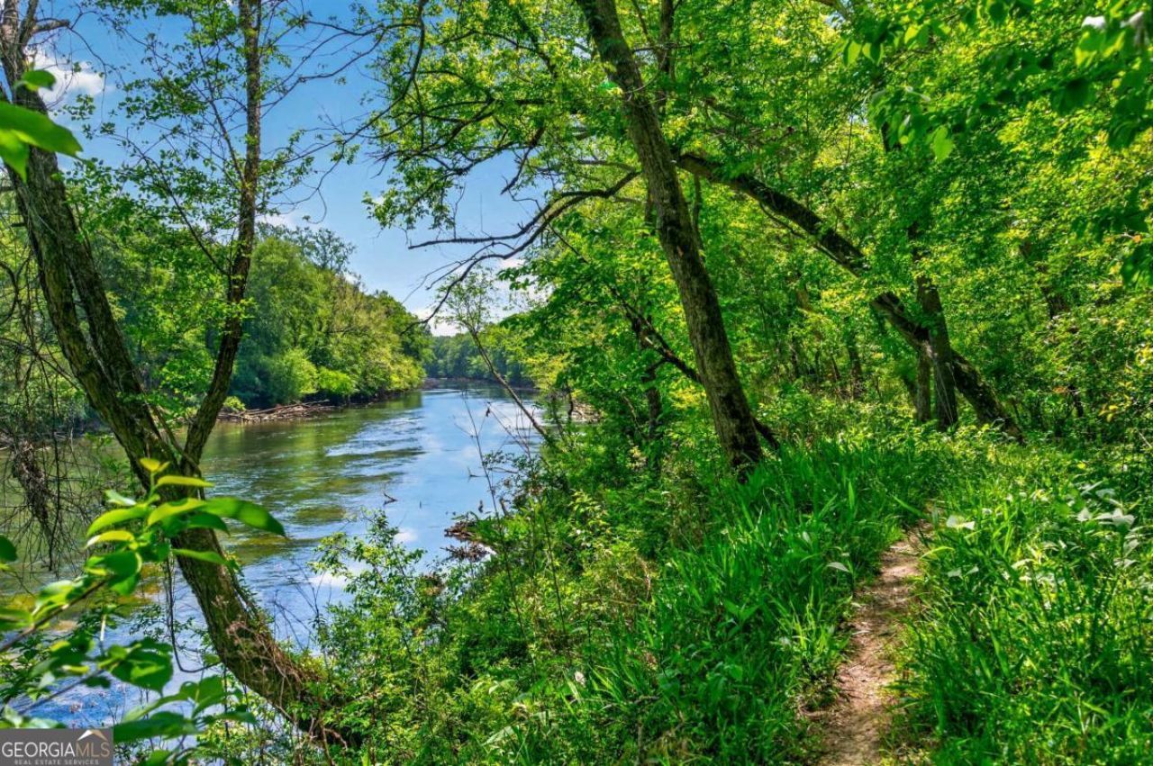 Experience a RARE sense of peace, privacy, and CONNECTION to NATURE on this exceptional 1.58-acre CHATTAHOOCHEE RIVER HOMESITE in Olde Atlanta Club. A freshly painted exterior enhances the home's timeless presence, while inside, thoughtfully designed spaces create an effortless balance of refined living and tranquil retreat. Designed to capture both light and landscape, this beautifully appointed 5-bedroom, 4.5-bath residence unfolds with intention, creating an immediate sense of calm and connection to its surroundings. A light-filled two-story foyer is framed by a formal dining room and a versatile front living space-ideal as a private office, library, or quiet sitting room-each finished with hardwood floors and timeless architectural detail. THE HEART OF THE HOME REVEALS ITSELF IN THE DRAMATIC TWO-STORY FAMILY ROOM, where a wall of Pella windows draws the outdoors in, filling the space with natural light and offering uninterrupted views of the surrounding trees. Custom built-ins and a fireplace create a warm, grounded focal point-both elegant and inviting. The kitchen is designed for effortless living and gathering, featuring white cabinetry, granite countertops, stainless steel appliances, double ovens, a gas cooktop, and a Bosch dishwasher. The open breakfast area and family room flows naturally to the expansive IPE cherry wood deck, where mornings begin with coffee among the trees and evenings wind down to the quiet sounds of nature. The main-level primary suite is a true sanctuary, privately positioned to overlook the backyard's layered landscape. The SPA-INSPIRED BATH evokes a sense of calm with dual vanities, a floating soaking tub, frameless glass shower, and a custom-designed walk-in closet-creating a space that feels both elevated and restorative. Upstairs, an open loft offers a flexible extension of living space, accompanied by three secondary bedrooms, including one with a private en-suite. The remaining bedrooms share a beautifully updated bath with double vanities, providing both comfort and thoughtful design. The terrace level enhances the home's versatility, with newly installed LVP flooring and multiple spaces to tailor to your lifestyle-whether for a media room, fitness studio, guest suite, or workshop. An unfinished area offers additional potential, including space for a golf simulator or future customization. Outdoors, the experience becomes truly exceptional. The fenced backyard is designed as a PRIVATE RETREAT, with multi-level lawns, STRIKING WATER FEATURE WITH FOUNTAINS, and natural areas that invite both relaxation and play. Stepping through the discreet gate which leads to the woods and your own stretch of Chattahoochee River frontage, ONE CAN SPEND DAYS FISHIING, KAYAKING, OR SIMPLY ENJOYING THE QUIET RHYTHM OF THE WATER. All of this within Olde Atlanta Club, one of Forsyth County's most sought-after communities, offering resort-style amenities including championship golf, swim and tennis, pickleball, basketball courts, playground, and a vibrant, active lifestyle-zoned for the award-winning Lambert High School district.