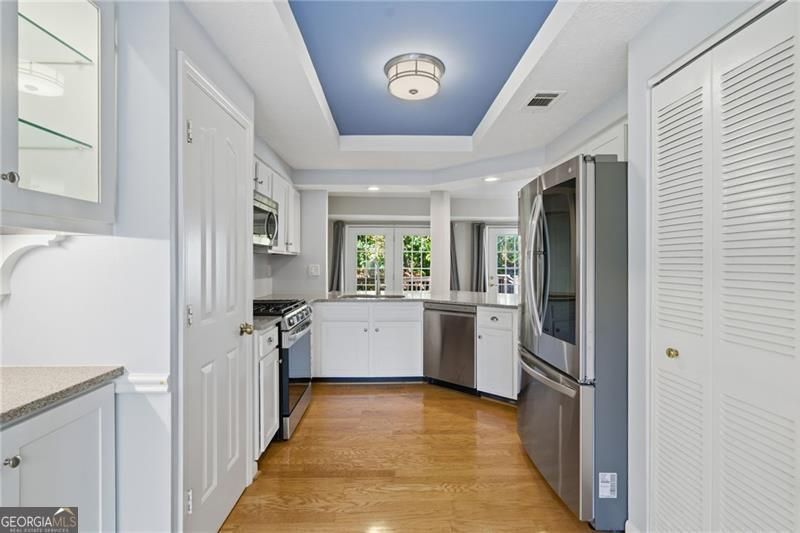 Welcome Home!! Spacious 2 bed 2 bath condo with 1,900 square feet of living space! Located on the first floor but tons of natural light and two outdoor spaces, and is handicap accessible - this home has the perfect roommate floorplan and is in a walkable community! The eat-in kitchen features quartz countertops, stainless steel appliances, and open dining space. 2nd living space/den is perfect for an office!! The home also features hardwood floors, double vanities, and oversized closets. Outside you'll find a courtyard right off the kitchen with tons of privacy, off the back a huge deck, and oversized backyard perfect for kids & pets! Community includes Gym, pool, and tennis courts! HOA also covers Trash, pest control, & exterior maintenance! Conveniently located, only three minutes from Perimeter Mall and I-85, and only five minutes from Publix and Costco. Top-rated school district! Schedule your tour today! HOA is replacing the back deck & seller is going to pay for the assessment in full before closing, woo hoo!!