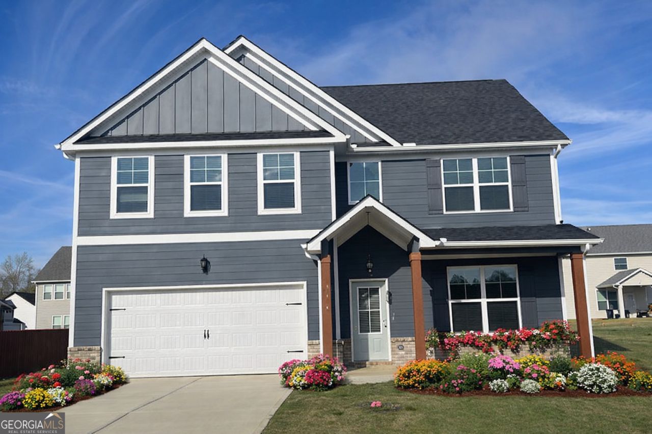 Welcome to the Kathleen Floor Plan in Harley Farms South! This impressive two-story new construction home features 5 bedrooms and 3 full bathrooms, offering the perfect blend of space, comfort, and modern design for today's lifestyle. The open-concept layout creates an ideal flow for everyday living and entertaining. The spacious kitchen is the heart of the home, showcasing granite countertops, 42 soft-close cabinetry, and a large center island overlooking the inviting family room. Additional interior highlights include luxury vinyl plank flooring throughout the main living areas, a cozy fireplace, and ceramic tile flooring in all bathrooms. Located in the growing Bonaire community, Harley Farms South offers convenient access to top-rated schools, shopping, dining, and Robins Air Force Base. Buyer incentives available! Preferred lender incentives include up to $20,000 in Flex Cash plus a stainless steel refrigerator. Ask about Federal Home Loan Bank Grant funds up to $20,000 for qualified buyers, which may be used in addition to builder incentives. Don't miss this opportunity to own a beautiful new home in one of Bonaire's fastest-growing communities. Schedule your tour today!