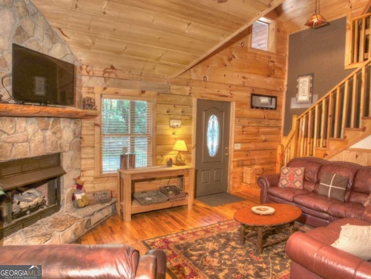 This charming log cabin is the perfect getaway for families and groups seeking both comfort and adventure. The cabin comes fully furnished and is approved for short term rentals! Nestled among towering trees for ultimate privacy, the spacious retreat offers plenty of room for everyone. The inviting living room boasts a gorgeous stone gas-log fireplace, creating the perfect cozy atmosphere. The main-level master suite ensures relaxation, complete with a private full bath, while two upper-level bedrooms and a lower-level sleeping area provide ample accommodations. Downstairs, the game room is ready for endless entertainment. Step outside to enjoy the hot tub, fire pit, and scenic surroundings, offering an ideal setting for unwinding beneath the stars. Conveniently located near Unicoi State Park and the charming Alpine village of Helen, GA, this cabin offers easy access to hiking, dining, and local attractions. With paved roads and a driveway, accessibility is effortless. Plus, it's zoned for short-term rental use and transferable to new owners, making it a fantastic investment opportunity. Whether you're seeking adventure or relaxation, this stunning log cabin delivers the best of both worlds. Ready to make it yours?